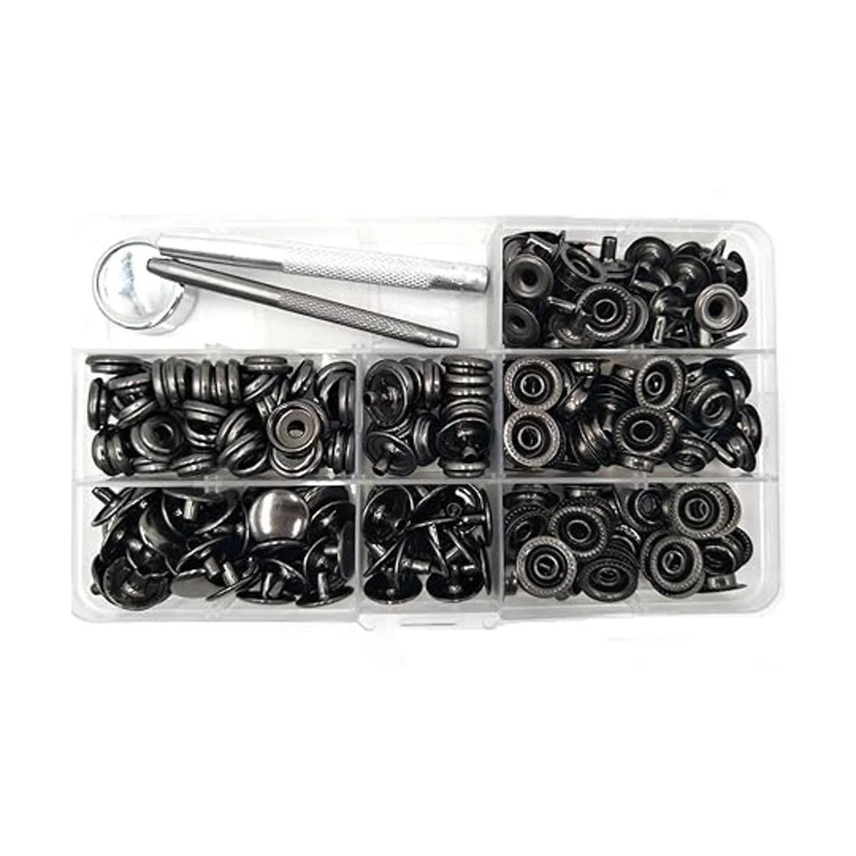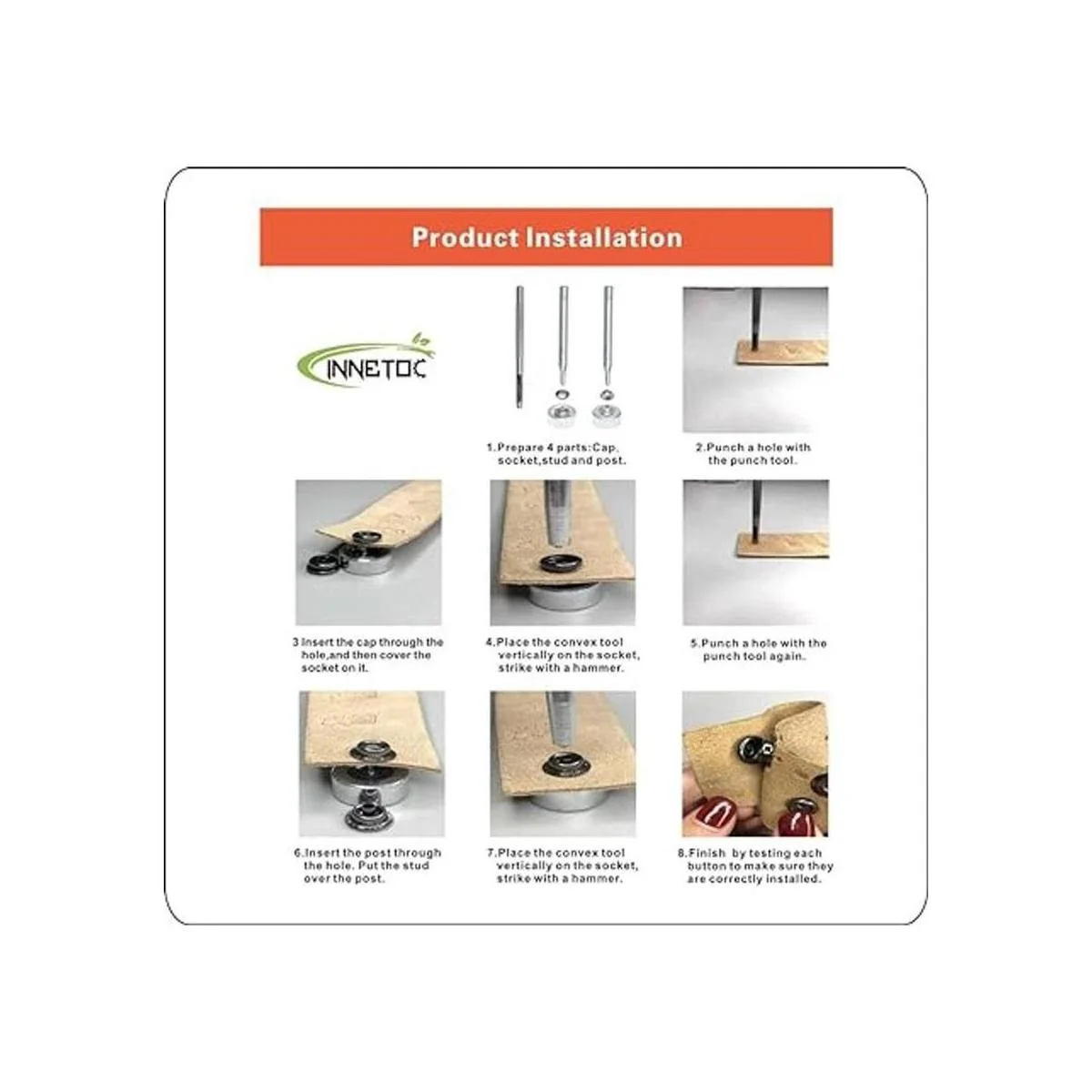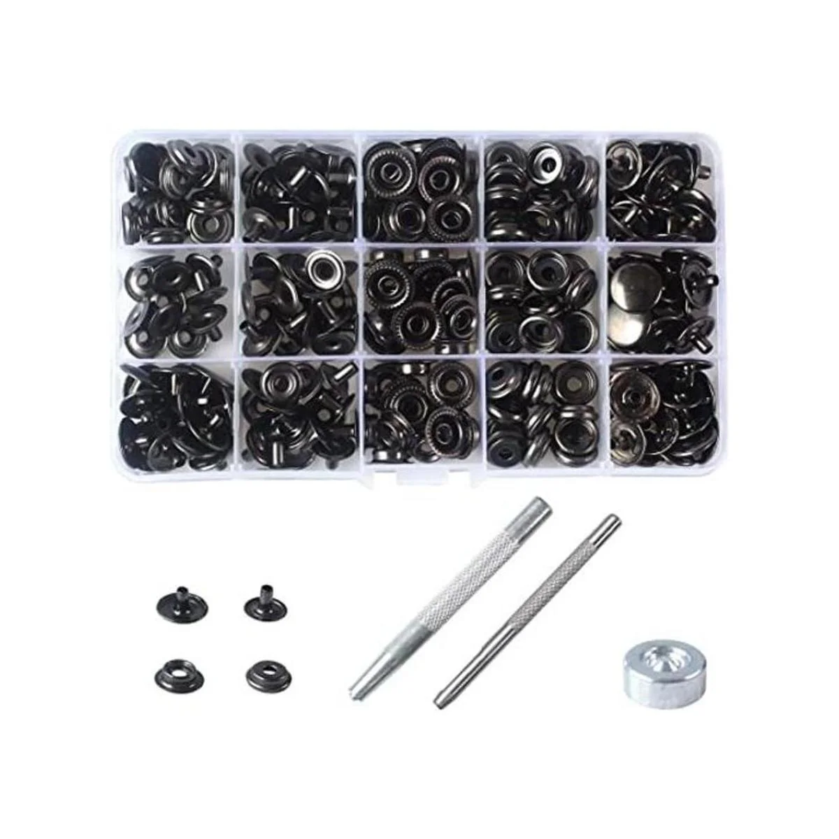 70 juegos de 0.591 in 58 pulgadas, kit de cierres a presión de alta resistencia, broches de metal para manualidades de cuero, kit de botón de reparación de ropa con herramienta de instalación a presión