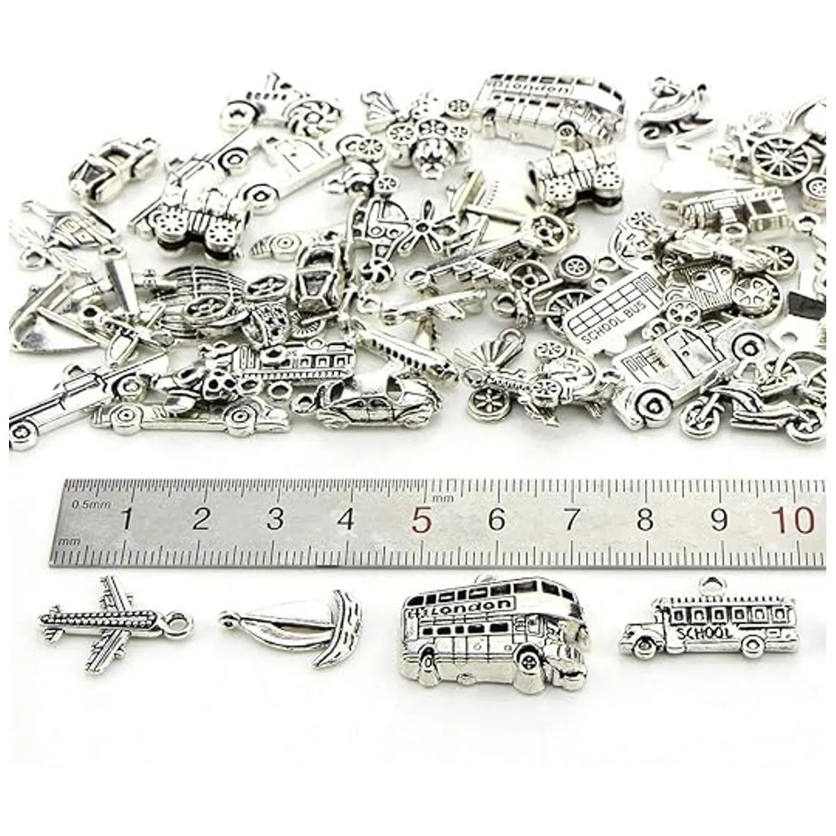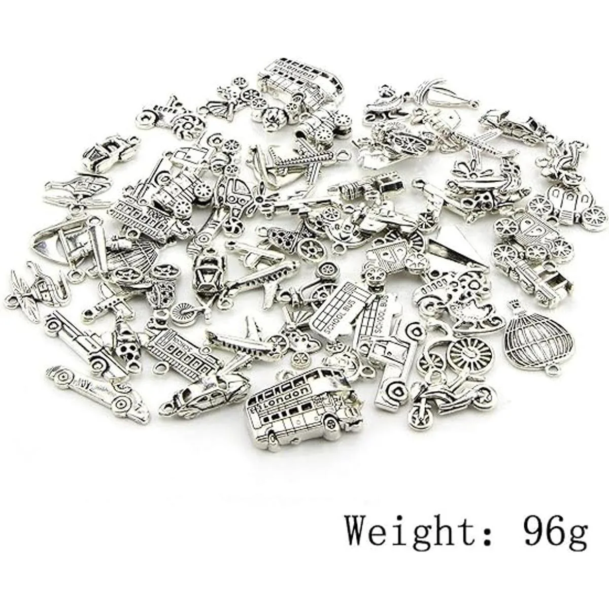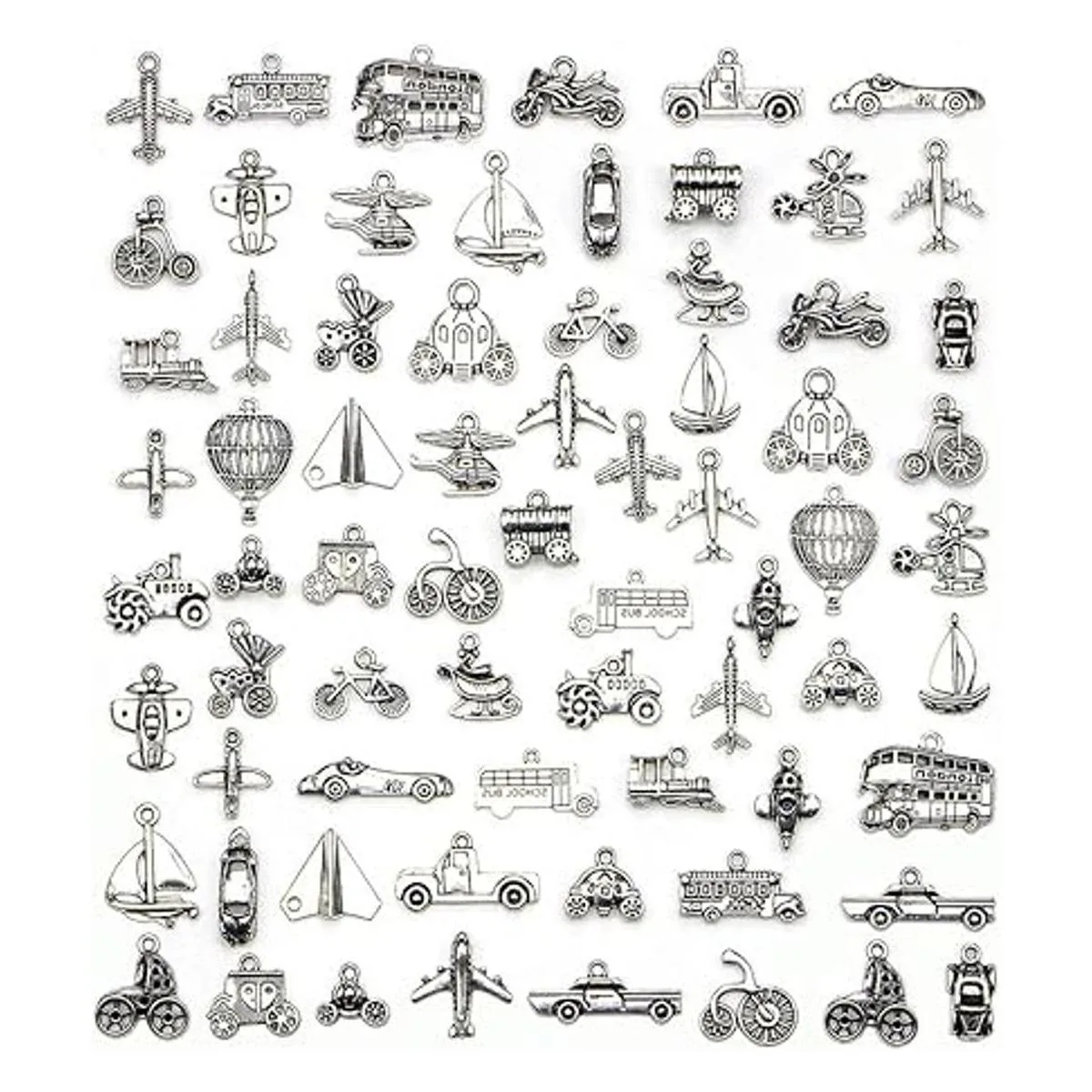 70 piezas al por mayor herramientas de transporte Tema a granel Lots de plata dijes mezclados lisos tibetanos chapados en plata metal colgantes DIY para collar pulsera hacer joyas y manualidades