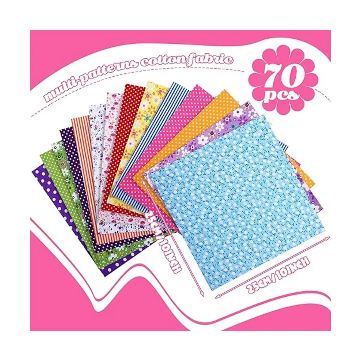 70 piezas de tela de algodón de 10 x 10 pulgadas