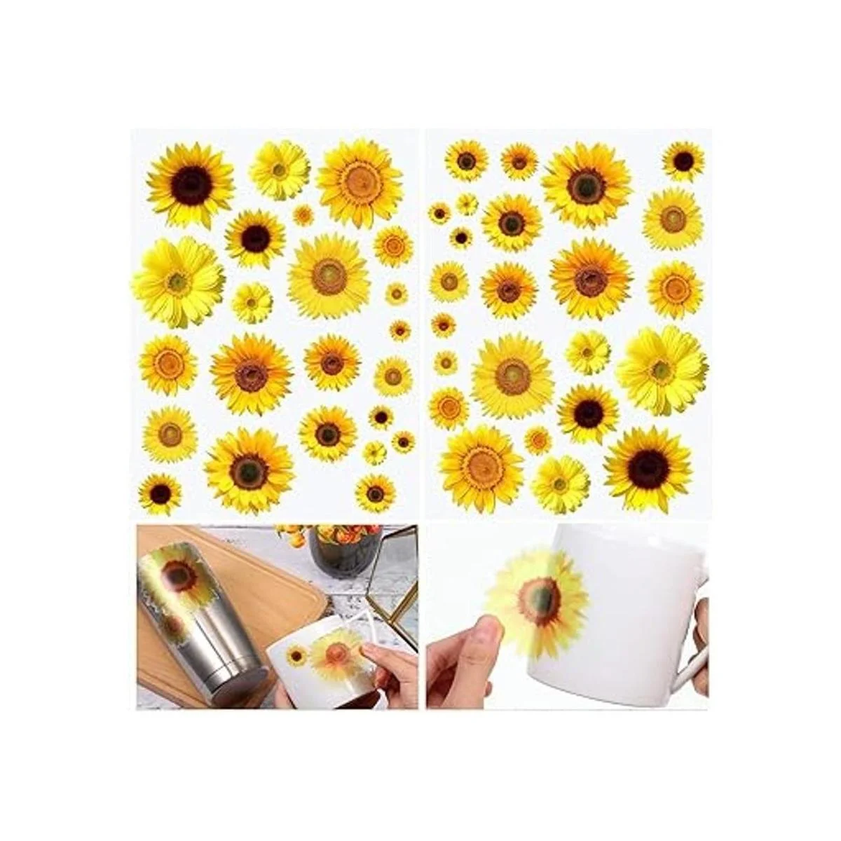 Amplia gama de aplicaciones: puedes utilizar estas calcomanías de girasol para decorar tu coche, baño, sala de estar, etc., o pegarlas a tus artículos de papelería, vidrio de agua, diario, computadora, teléfono móvil o atender a todo tipo de fiestas temáticas para añadir sabor artístico a tu hogar y fiesta