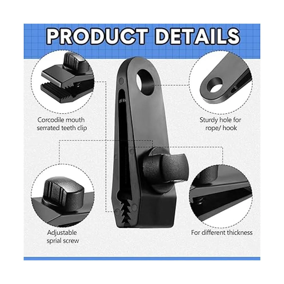 Abrazadera de lona de agarre fuerte: clips de lona resistentes diseñados con boca de cocodrilo con dientes que sujetan las lonas de forma segura hacia abajo, es adecuado para usar abrazaderas de lona, clips de lona