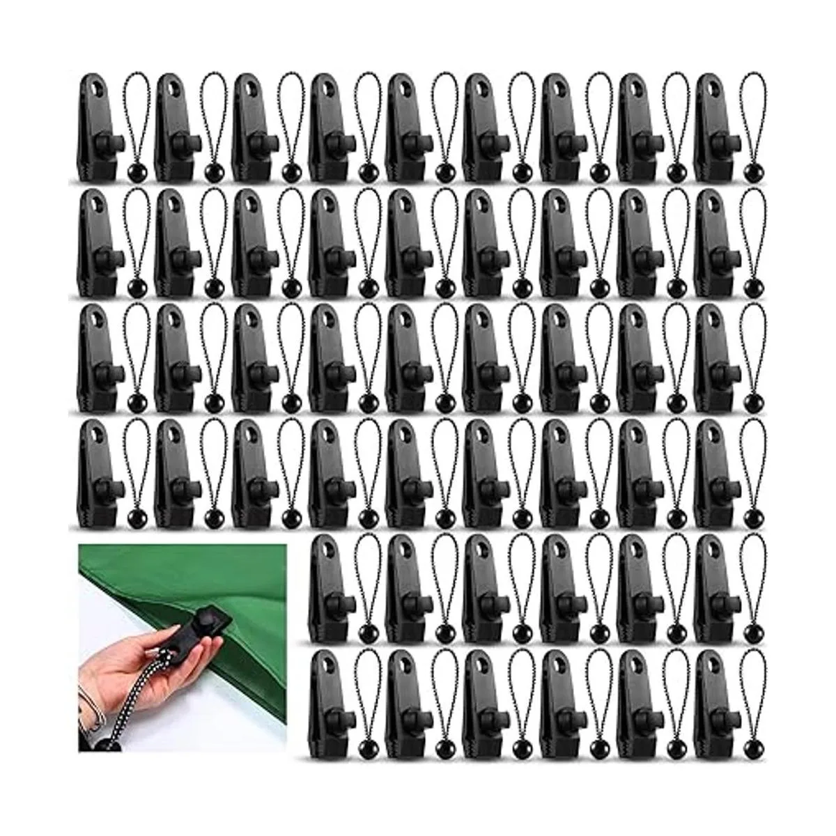 72 clips de lona y cuerdas elásticas de bola, abrazaderas de lona, agarre de bloqueo resistente, sujetadores de tienda de campaña de tiburón, cubierta de toldo de piscina, toldos de campamento, cubierta de automóvil, abrazadera de lona para tienda de campaña al aire libre