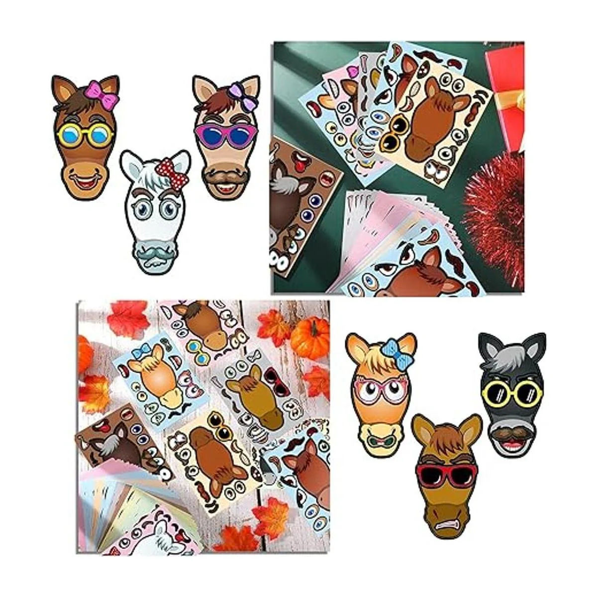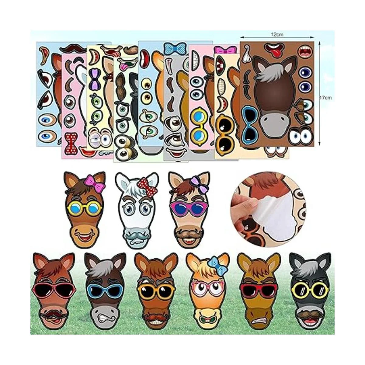 Pegatinas interesantes de caballos: estas pegatinas para hacer tus propios caballos están impresas con muchos patrones de expresión de cara linda, ayuda a los niños a diseñar el aspecto de caballos, probar diferentes combinaciones de expresiones faciales, a tus hijos les encantará