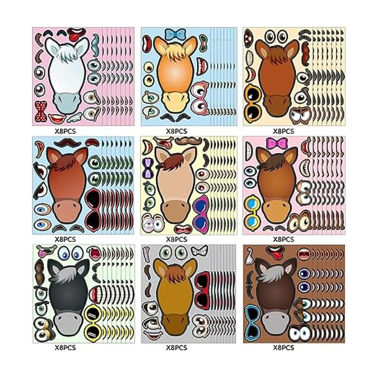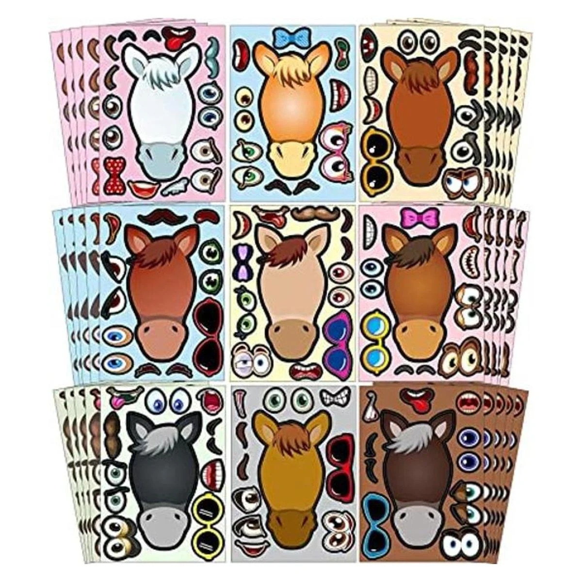 72 hojas de pegatinas para hacer un caballo de caballo, kit de recuerdos para hacer tu propio caballo pegatinas para hacer tu propio caballo pegatinas para niños zoológico Barnyard temático fiesta de cumpleaños decoraciones juego recompensas, 9 estilos