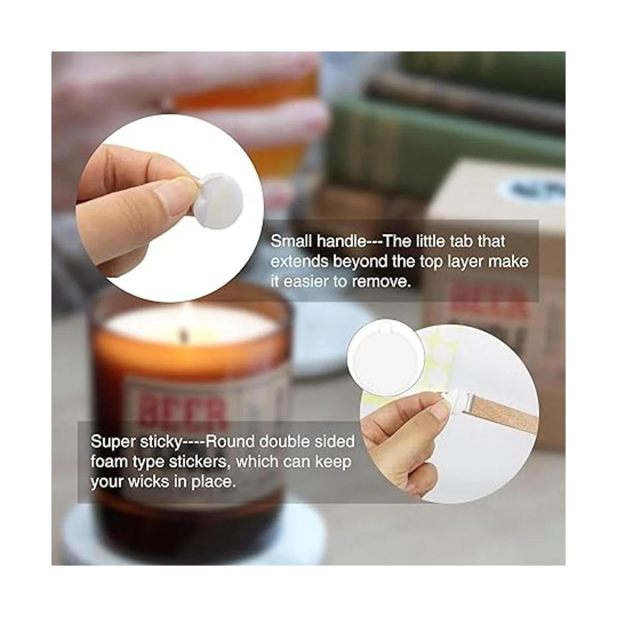 Gran adherencia: los puntos de pegamento para hacer velas están hechos de adhesivo resistente al calor, que son calcomanías redondas de espuma de doble cara de calidad. Buena adherencia y resistente al calor, lo que puede mantener tus mechas en su lugar en cera caliente.
