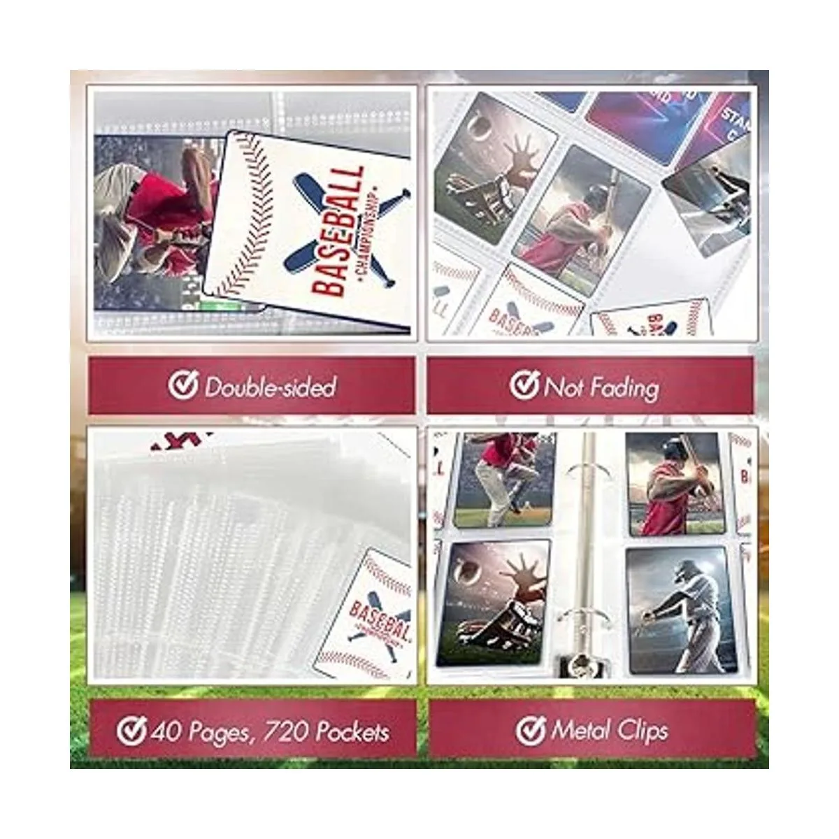 720 Pockets Baseball Card Sleeves Binder for Trading Card, Baseball Card Sleeves Card Holder Album Protectors Set Fit for Football Card, Baseball Card, Sport Card