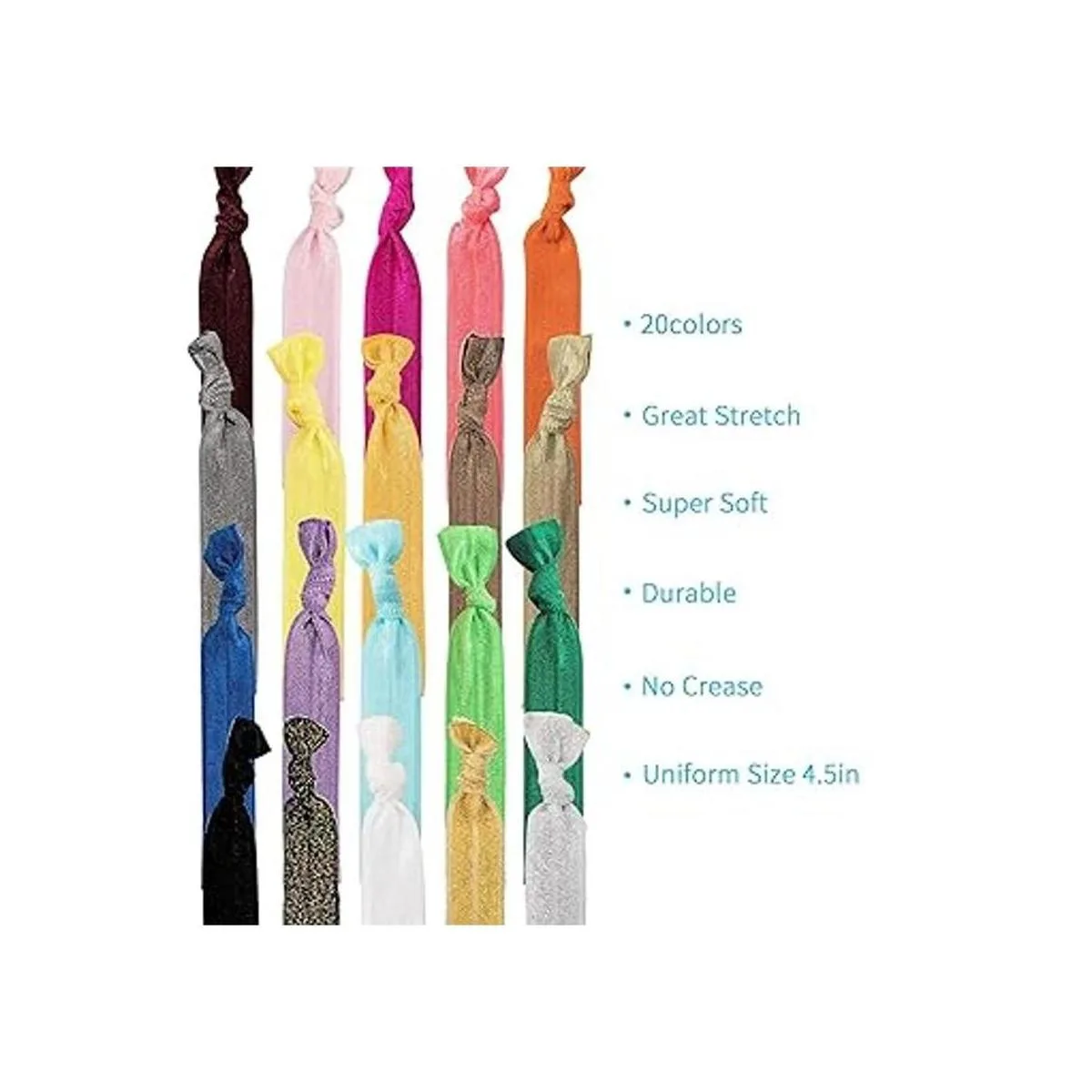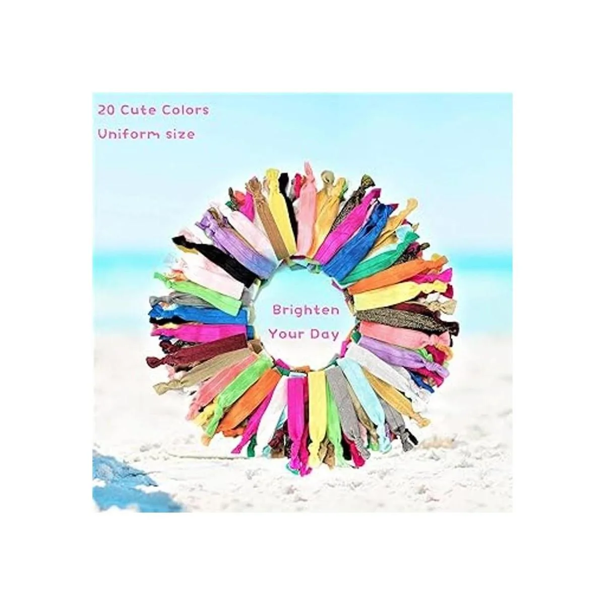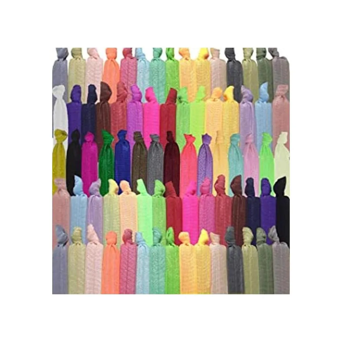 79STYLE 100 cintas elásticas para el cabello, sin pliegues, soportes para cola de caballo para niñas y mujeres, bandas para el cabello de yoga anudadas a mano sobre colores sólidos varios 20 colores
