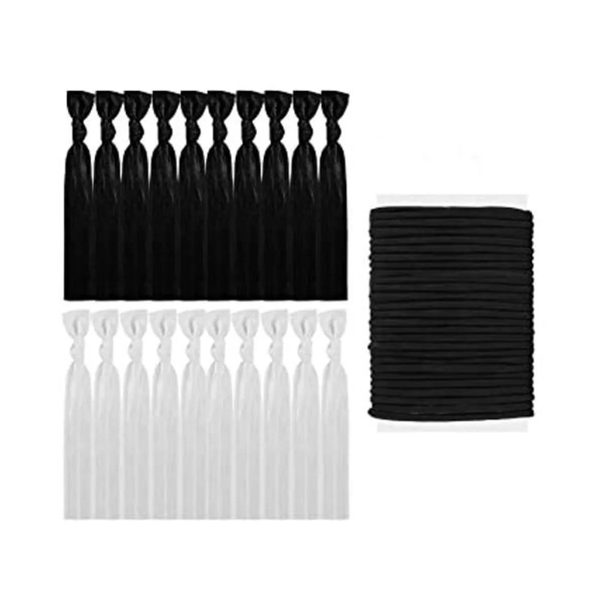 Cintas elásticas para el cabello sin arrugas, color blanco y negro, perfectas para coletas, moños y lazos. Hecho con cintas de tela elástica que proporcionan una sensación suave, fuerte y cómoda para cabello largo, grueso y rizado.