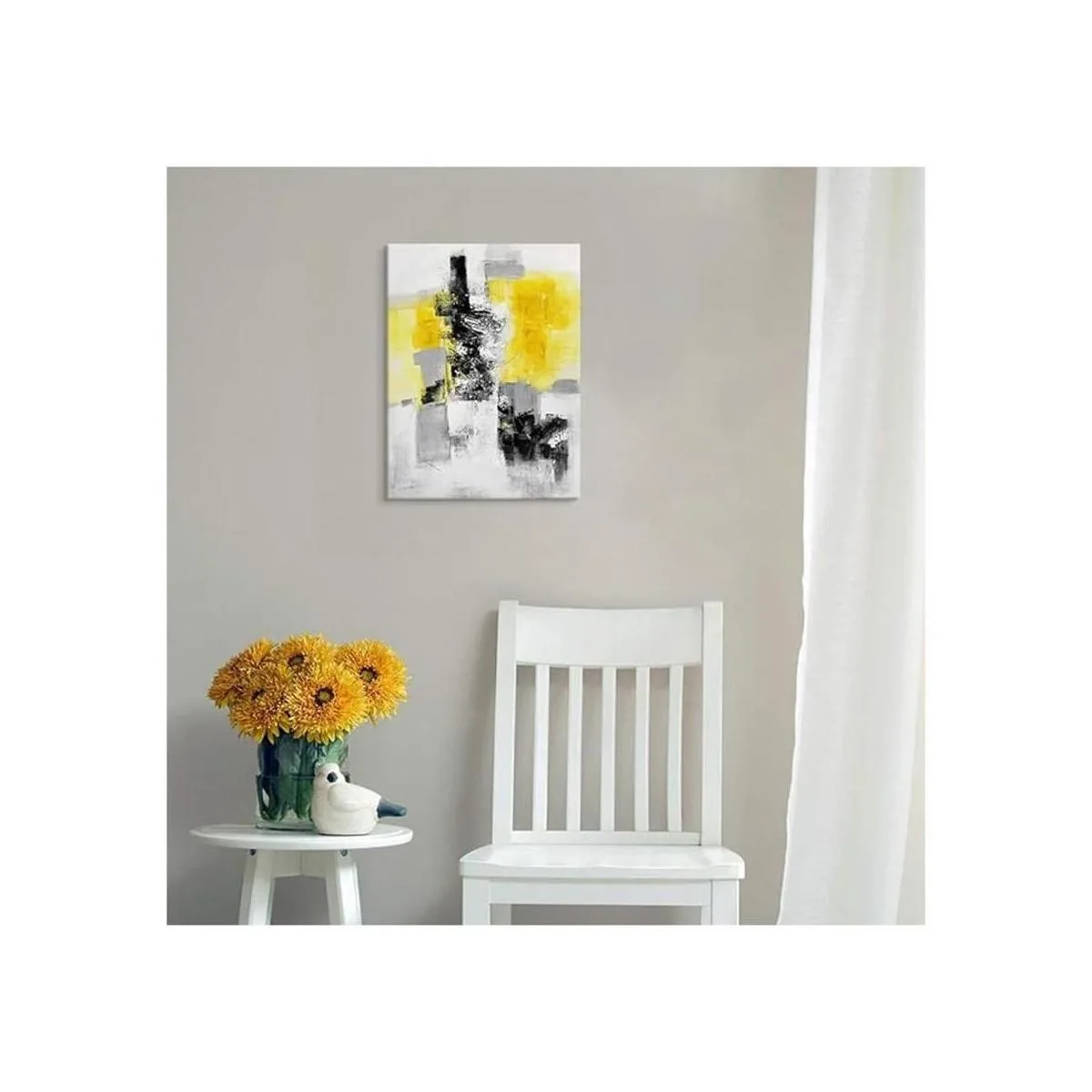 7Fisionart Decoración de pared de baño amarillo en lienzo gris, cuadros abstractos de arte de pared moderno, pintura impresa enmarcada para sala de estar, comedor, cocina, dormitorio, decoración de oficina, 12 x 16 pulgadas