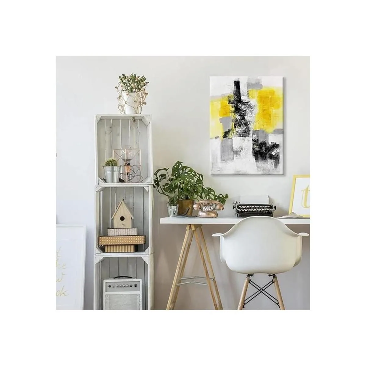 Arte abstracto de pared amarillo: lienzo impreso de alta calidad estirado y grapado a marcos duraderos resistentes al encogimiento. Impermeable, no se decolora, resistente a los rayos UV y tinta ecológica, resistente a la decoloración en interiores.