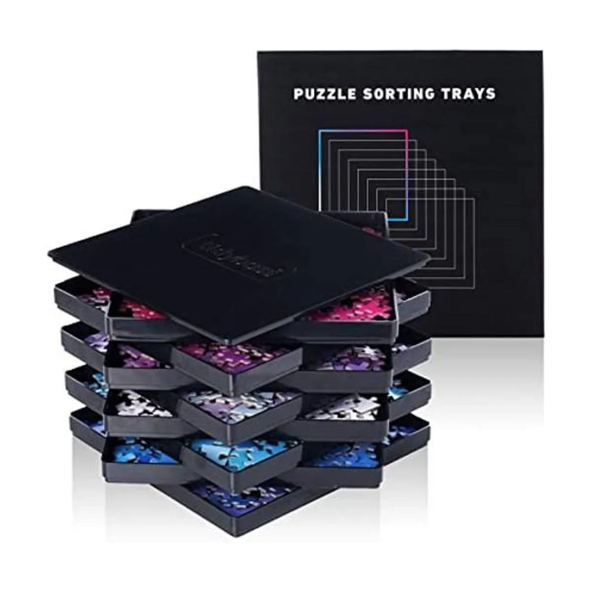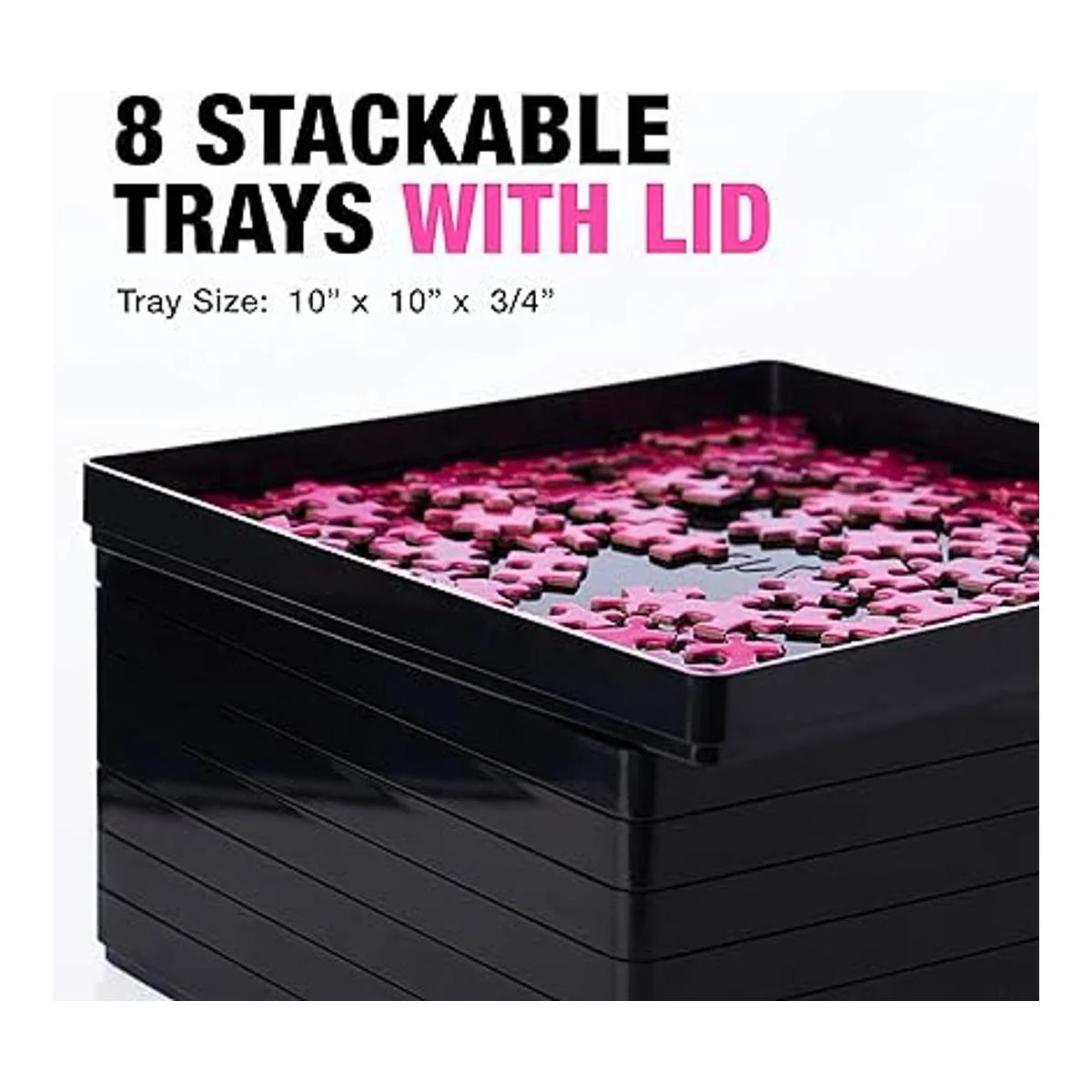 8 bandejas de clasificación de rompecabezas con tapa de 10 x 10 pulgadas, accesorios de rompecabezas, fondo negro que hace que las piezas destaquen para ordenar mejor patrones, formas y colores, para rompecabezas de hasta 1500 a 2500 piezas