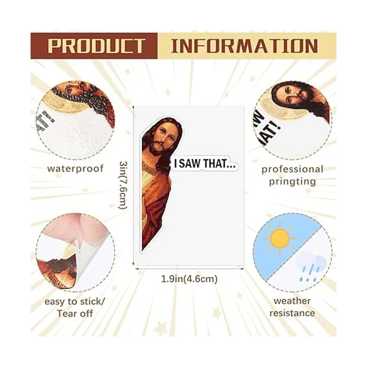 Lo suficientemente grande como para ver: estas calcomanías de Jesús son similares en tamaño, lo suficientemente grandes como para ver las impresiones en sus superficies, ligeras en peso y compactas, y no ocupan demasiado espacio, conveniente para almacenar o transportar