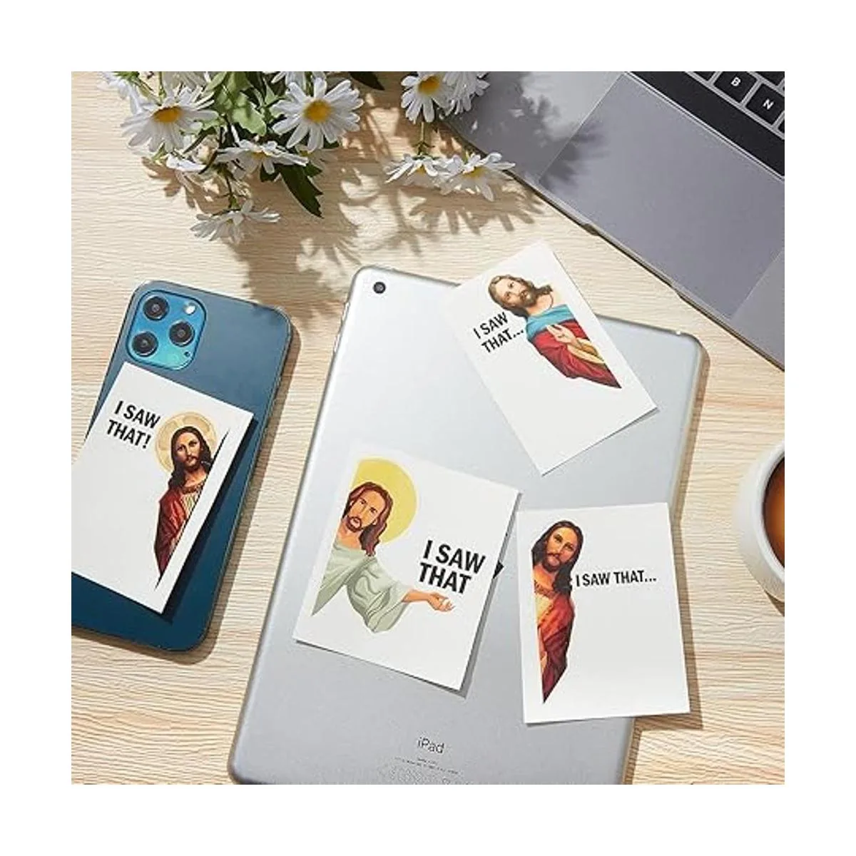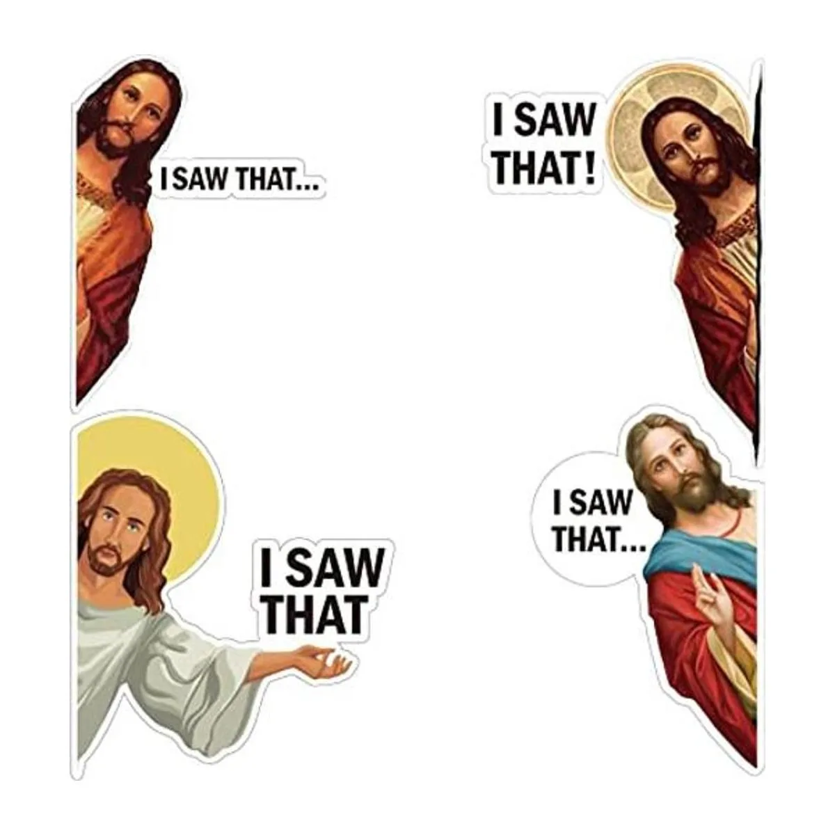8 calcomanías de Jesús I Saw That PET Jesús, calcomanías divertidas para automóvil, vehículo, camión, ventana, laptop, botella de agua, parachoques, monopatín, suministros de mochila para computadora, 4 estilos 3 pulgadas