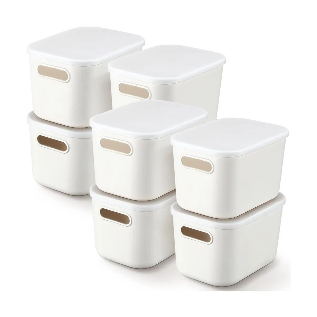 8 cubos de almacenamiento de plástico con tapas, caja de almacenamiento blanca con asa, recipientes apilables con tapas para organizar contenedores blancos, canasta de almacenamiento pequeña con tapa para mesa, 7.28 x 10.24 x 6.5 pulgadas