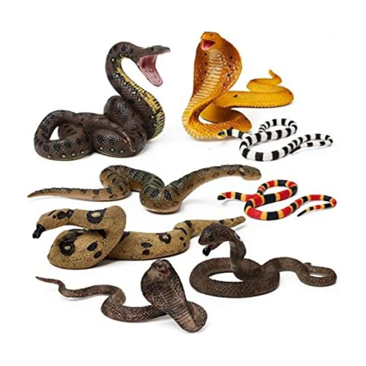 8 figuras de serpiente: 1 figura de serpiente de cobra, 1 serpiente de cascabel; 1 pitón; 1 figura de boa constrictor; 1 anaconda verde; 1 serpiente de coral; 1 serpiente de California; 1 serpiente de rey de California; 1 cobra de rey.