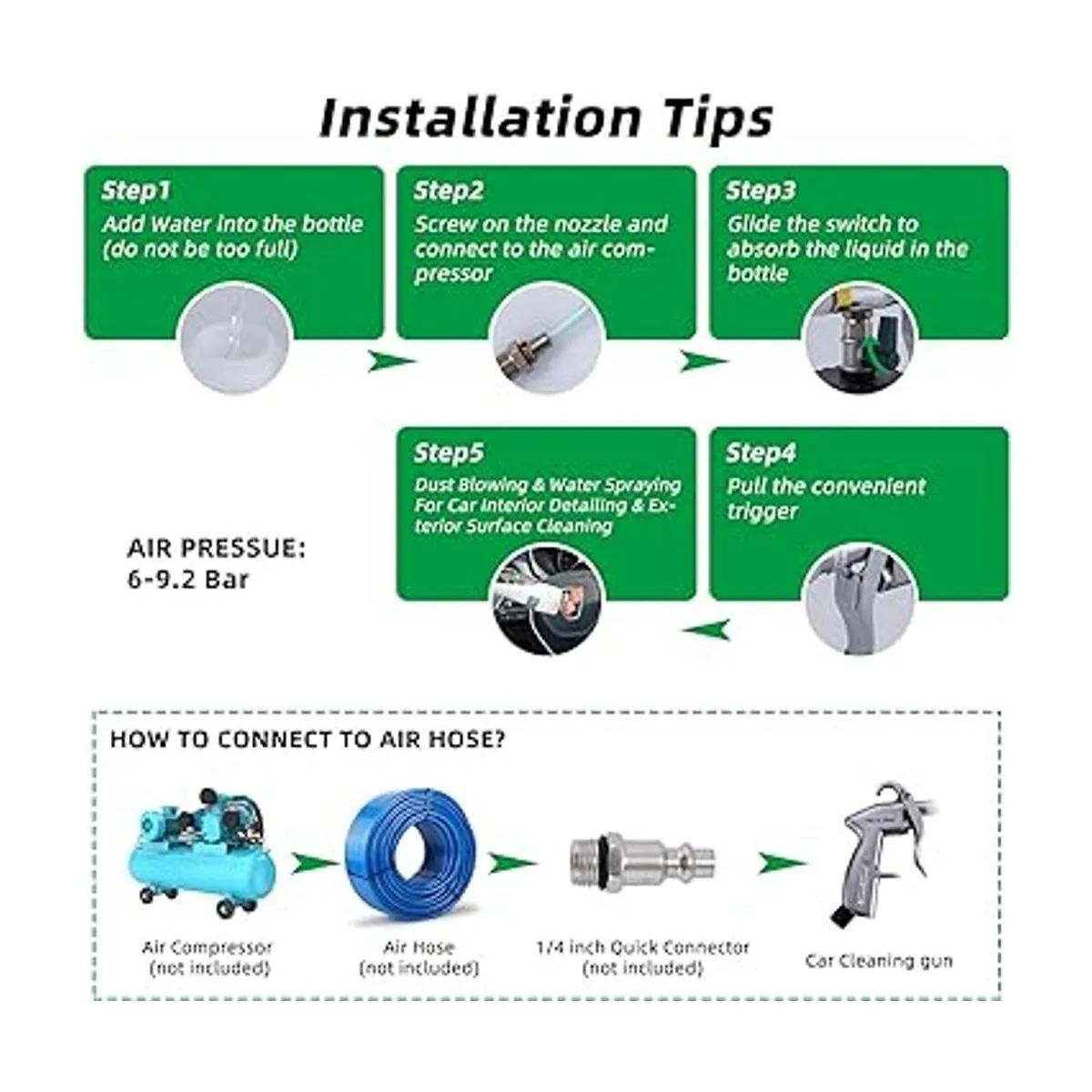 Ahorra tiempo: las herramientas de limpieza de interiores del coche son la manera de limpiar todas las superficies automotrices rápida y fácilmente. Limpia y seca al aire en cuestión de segundos. Esto ahorra tiempo y mejora significativamente la eficiencia de limpieza del interior.