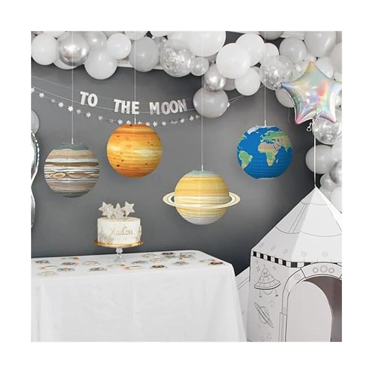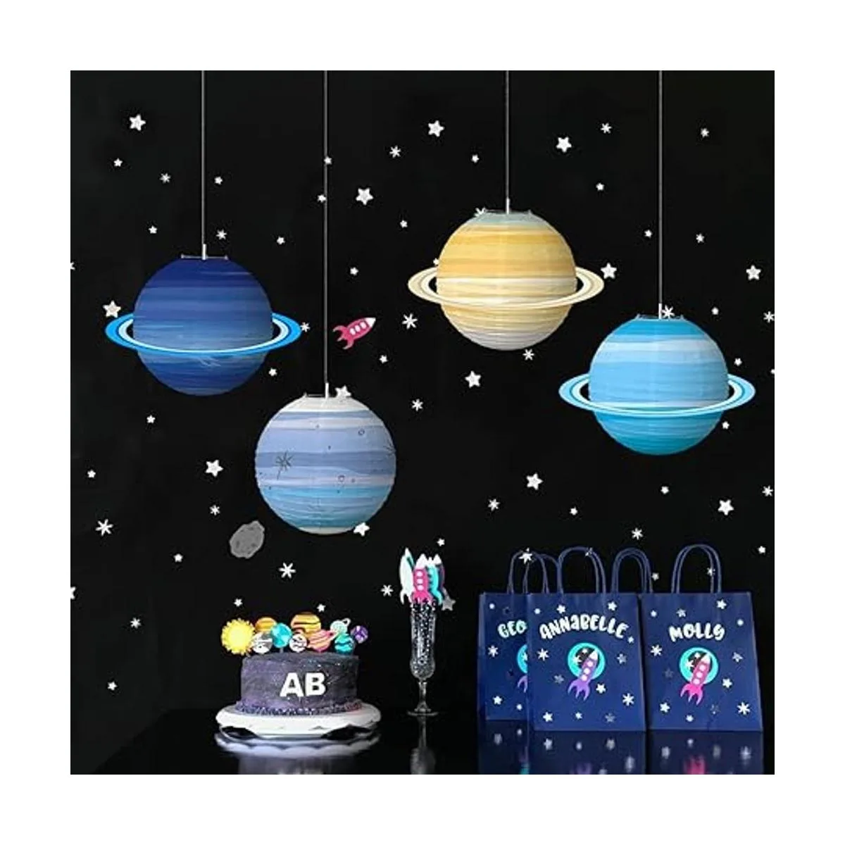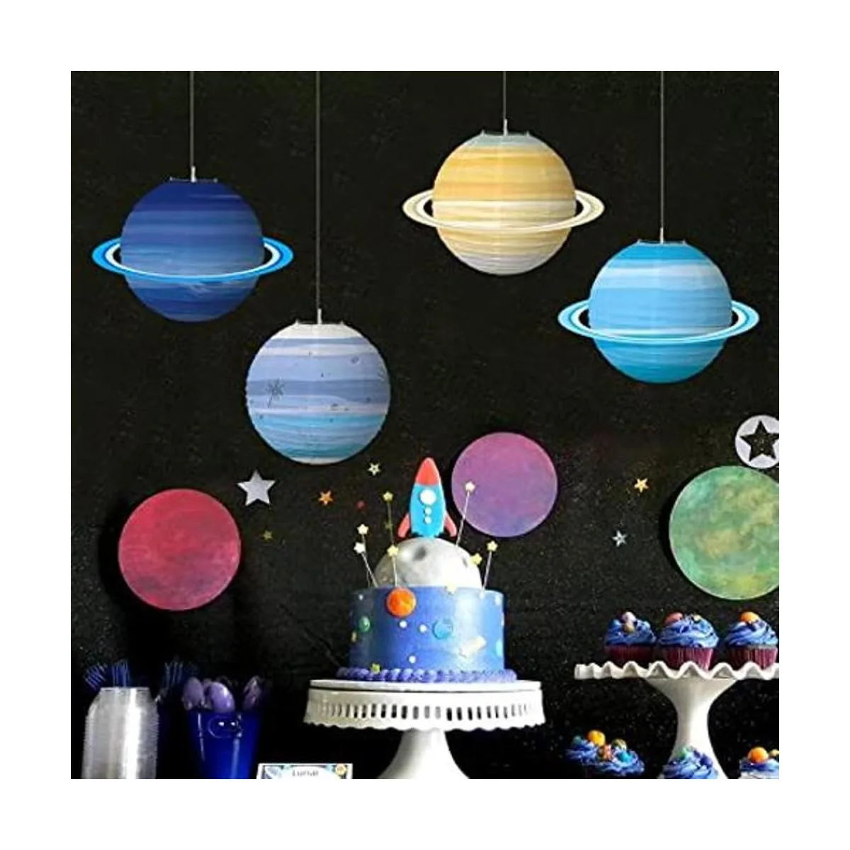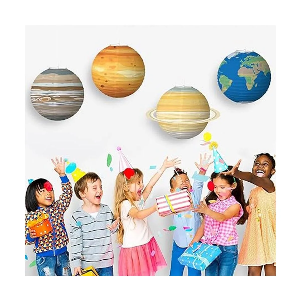 Este paquete incluye: 8 linternas de papel Planet. Tamaño: 11.8 in