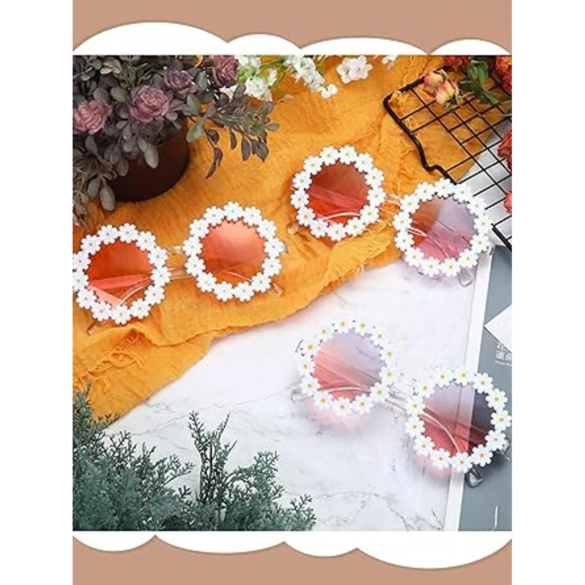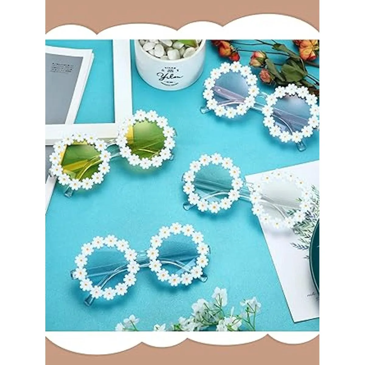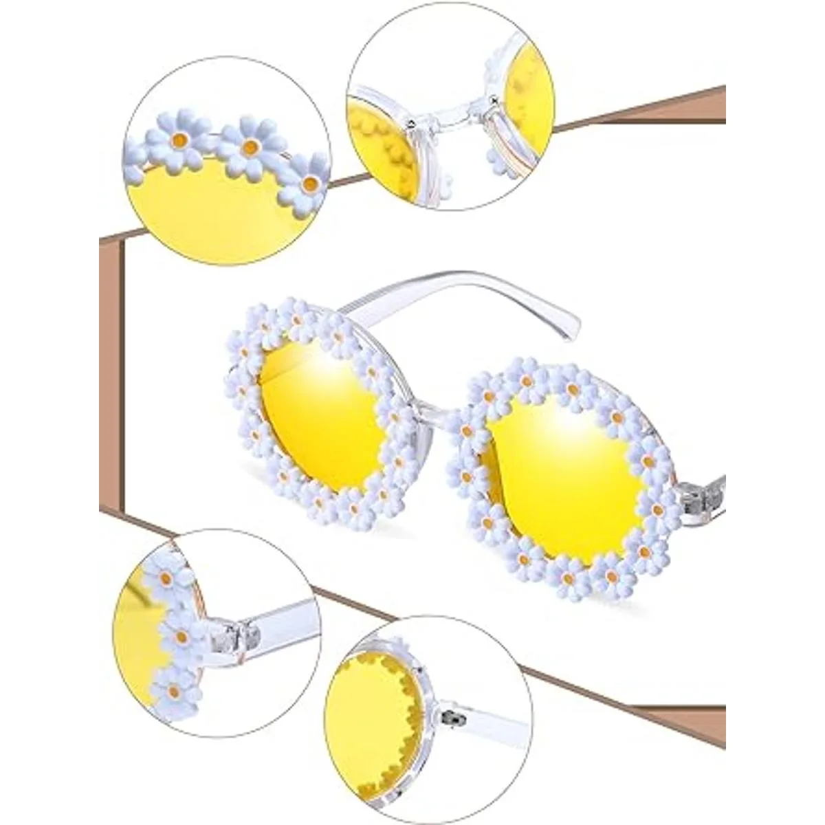 8 pares de gafas de sol de margarita para discoteca, festivales, divertidos lentes de sol de flores para mujer, retro, floral, forma redonda, accesorios de gafas de sol locas para fiestas