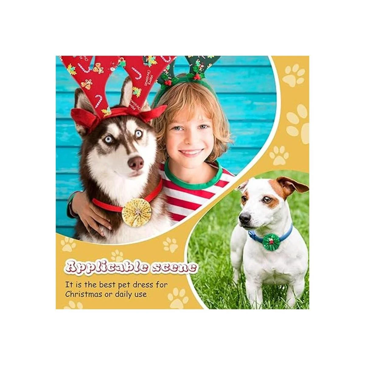 Buenos accesorios de aseo para mascotas: el material de calidad y los hermosos diseños en forma de flor, lo que hace que estos dijes de collar de perro de Navidad sean buenos accesorios de aseo para perros y gatos; viste a tus mascotas con estos bonitos adornos de collar de moño para que sean excepcionales en fiestas de Navidad y algunos concursos de belleza de mascotas