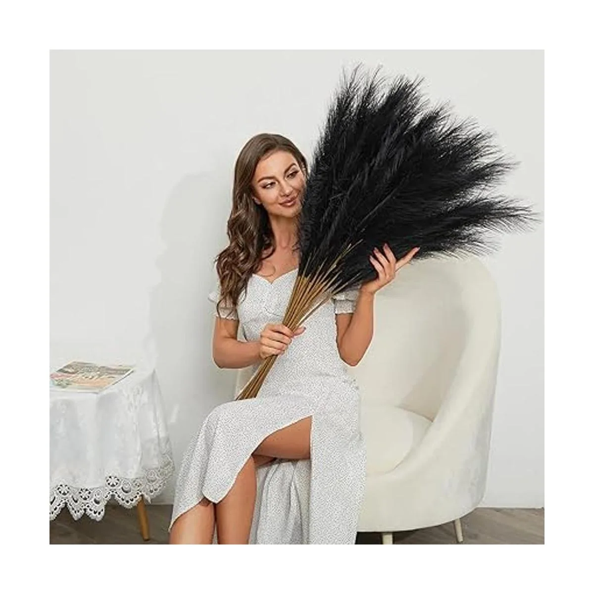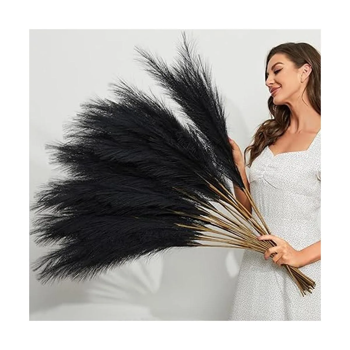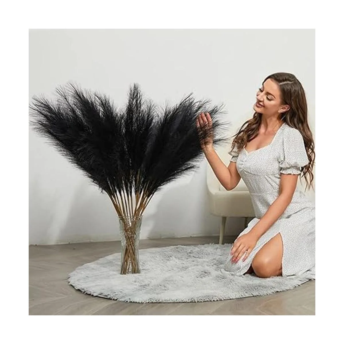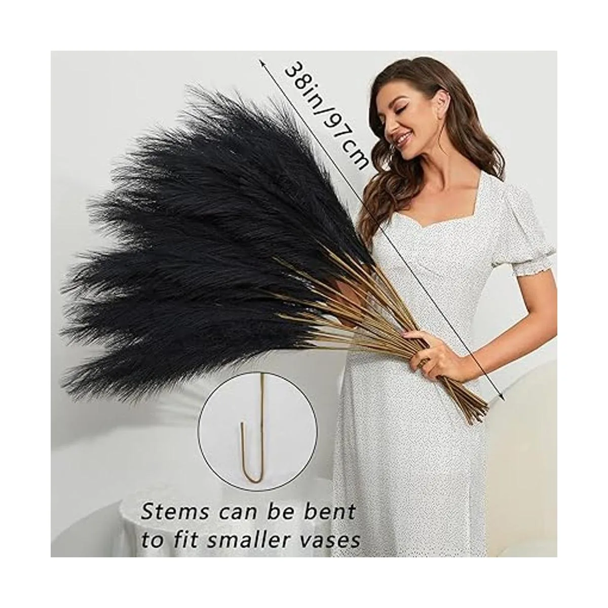 8 piezas de decoración de hierba de pampa sintética de 38 pulgadas 3.1 pies de alto, pompas artificiales grandes, ramas de hierba pomposa, plantas para relleno de jarrón de suelo, decoración bohemia del hogar negro