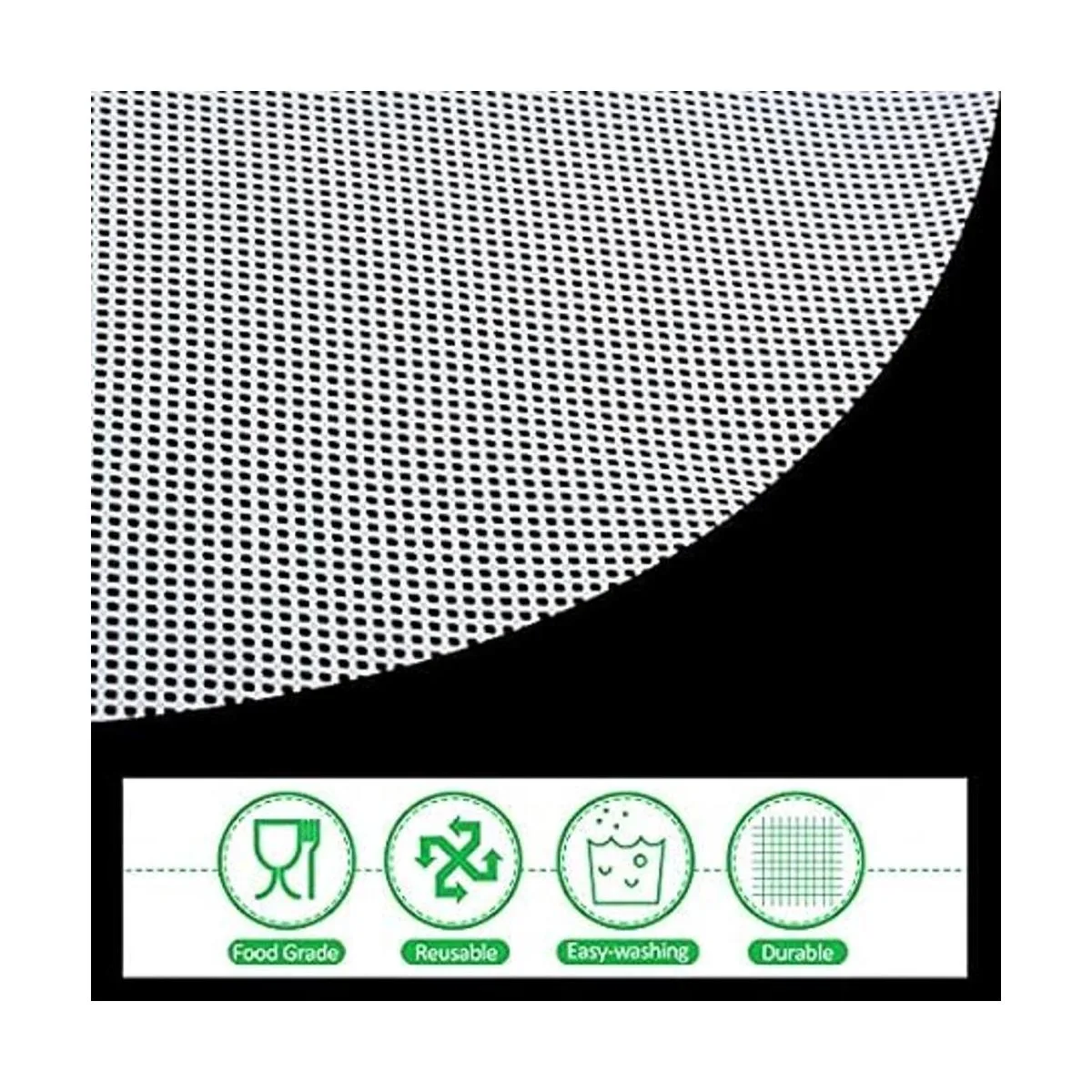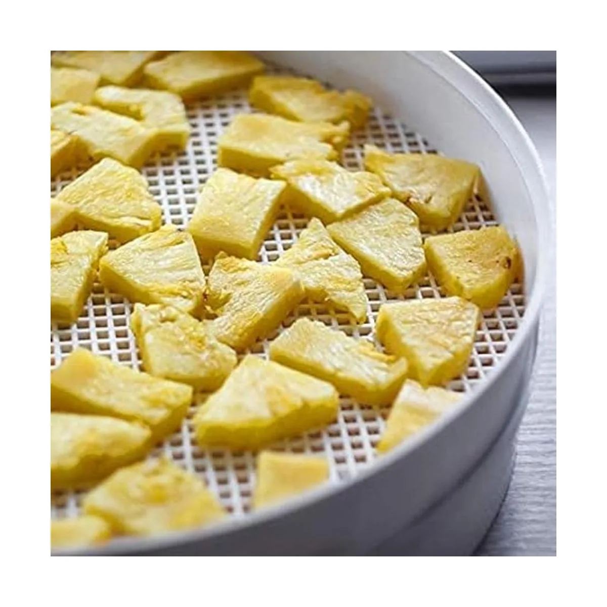 Tamaño adecuado y ajustable: la lámina de silicona para frutas es de 13.0 x 13.0 in, adecuada para la mayoría de secadores de frutas; y la malla de vapor de silicona se puede cortar en cualquier tamaño y forma que necesites