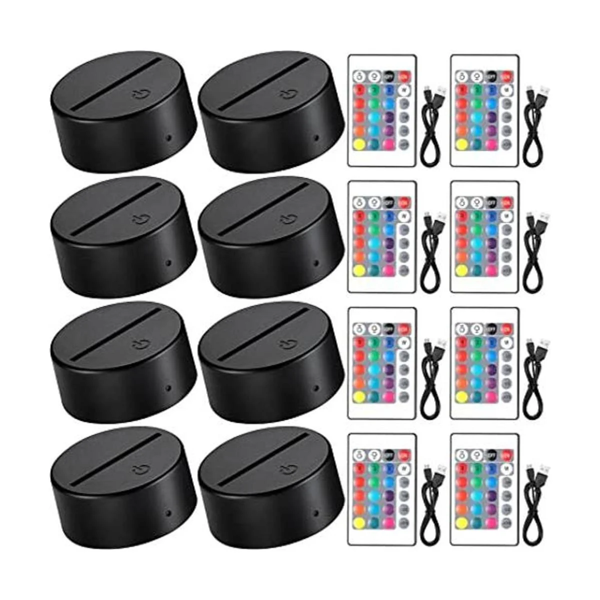 8 piezas de luz LED nocturna 3D, base de luz LED, base de pantalla, base iluminada, 16 colores con control remoto y cable USB para luces acrílicas