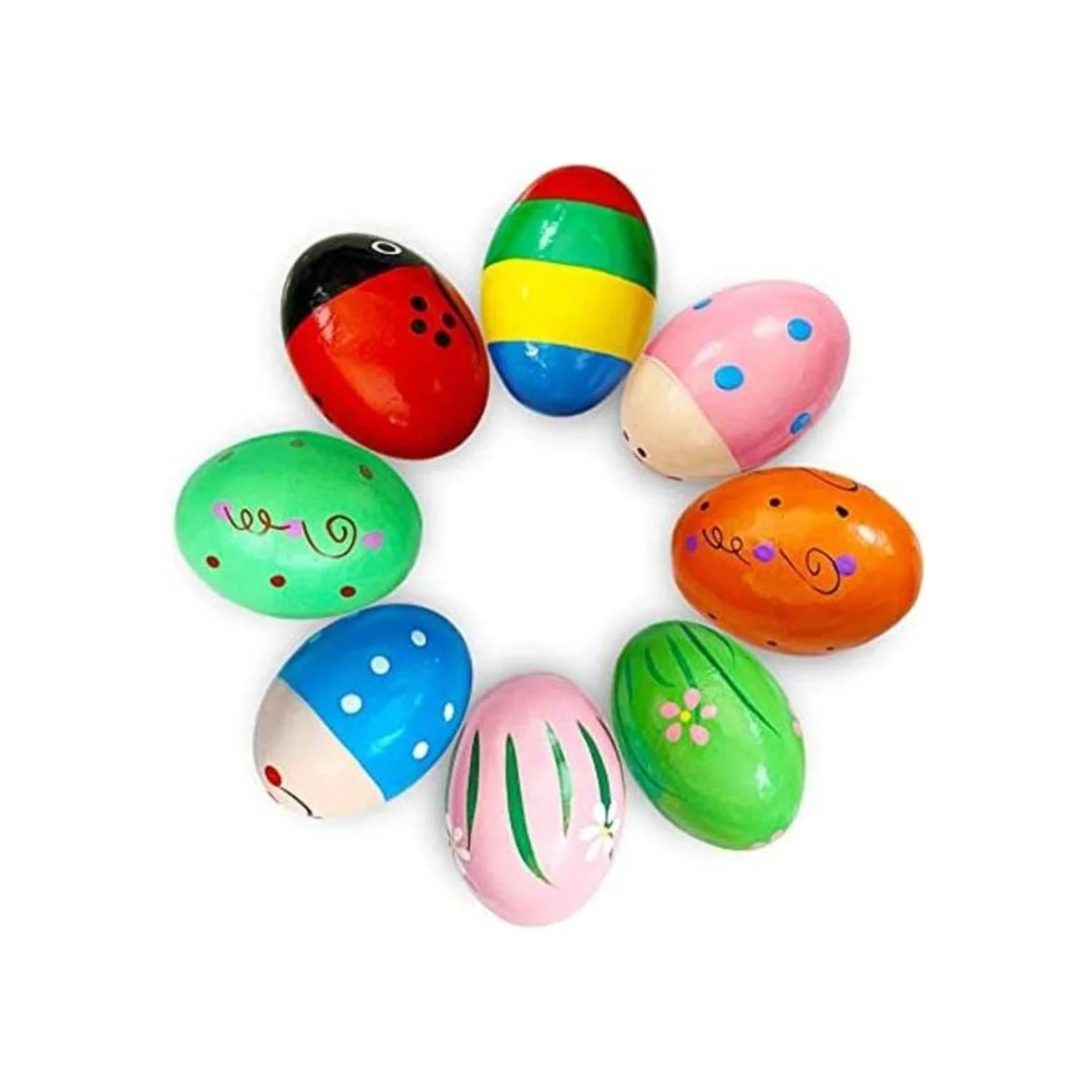 8 piezas de Pascua huevos de madera cocteleros instrumentos musicales decoraciones percusión Maracas artesanía para niñosniños pequeños caza juego regalos cesta relleno decoración