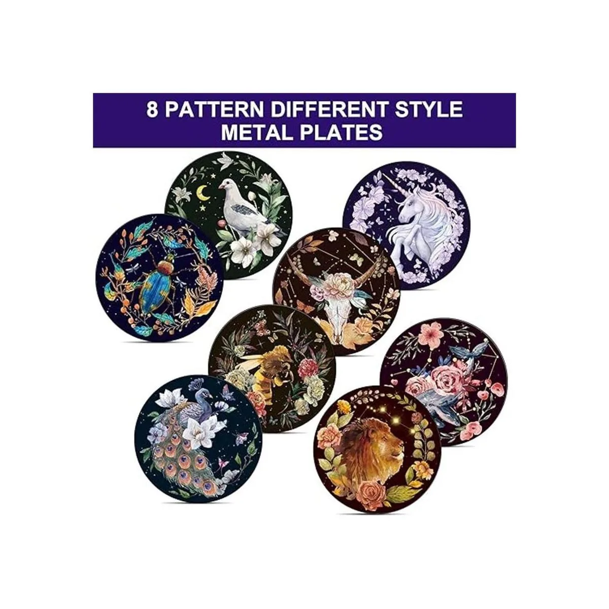 Lo que obtendrás: recibirás 8 placas de metal en 8 patrones diferentes, y cada patrón tiene 1 pieza, la hoja de metal es extremadamente delgada para que se pueda ocultar dentro de la funda del teléfono sin añadir volumen