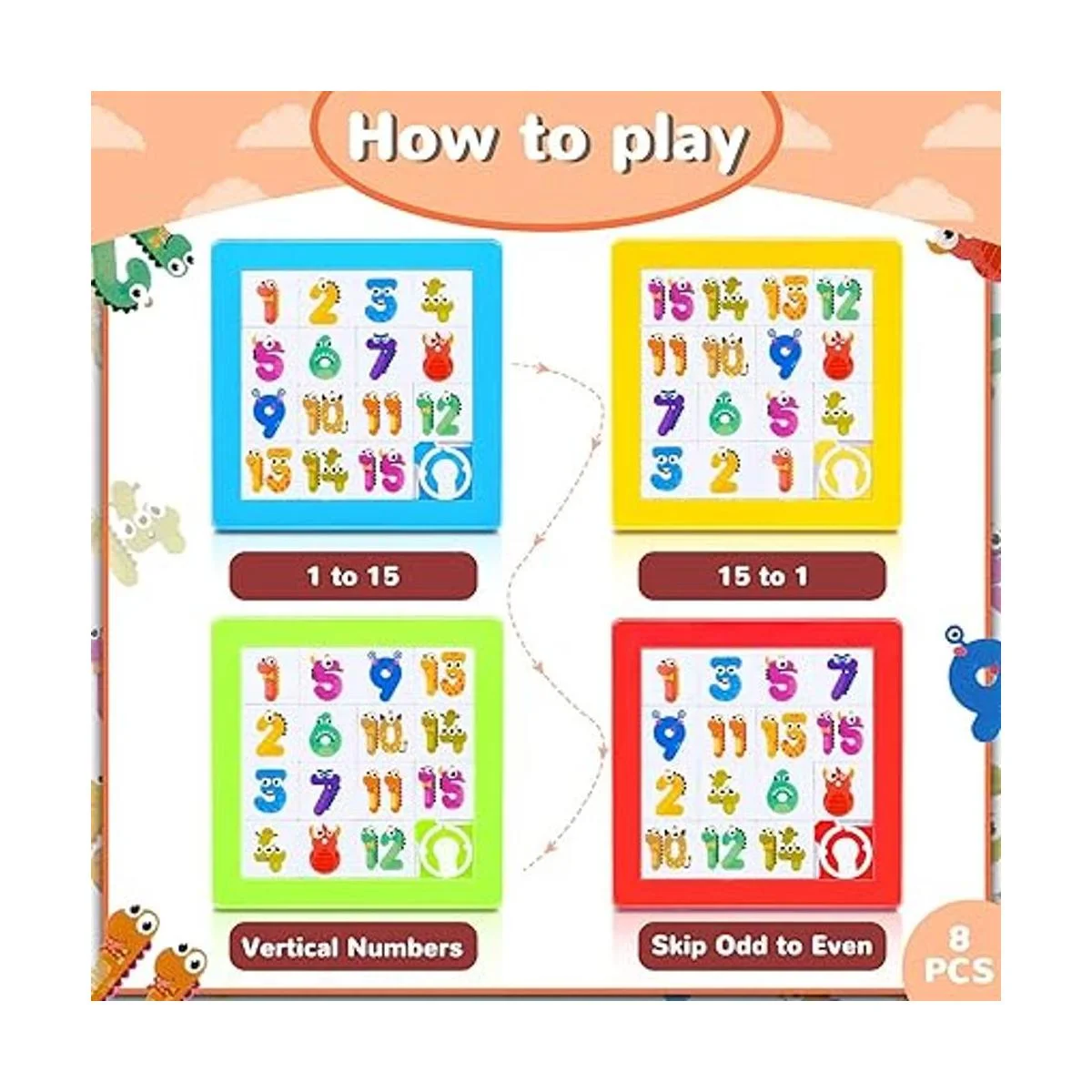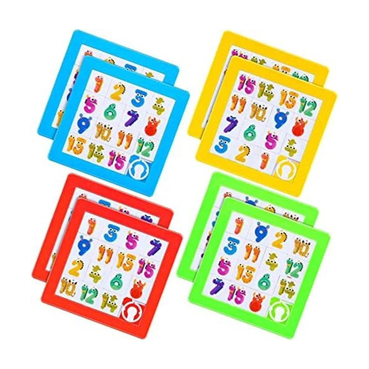8 piezas de rompecabezas de 15 diapositivas de plástico, rompecabezas de diapositivas para el cerebro, juego de IQ, juguetes de fiesta de Navidad, herramienta educativa de aprendizaje para niños y niñas, regalo de fiesta colorido número