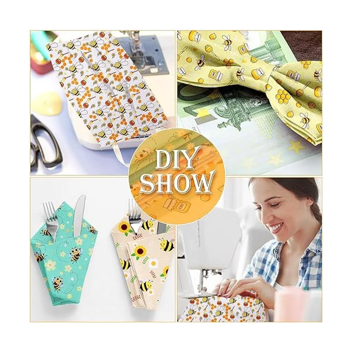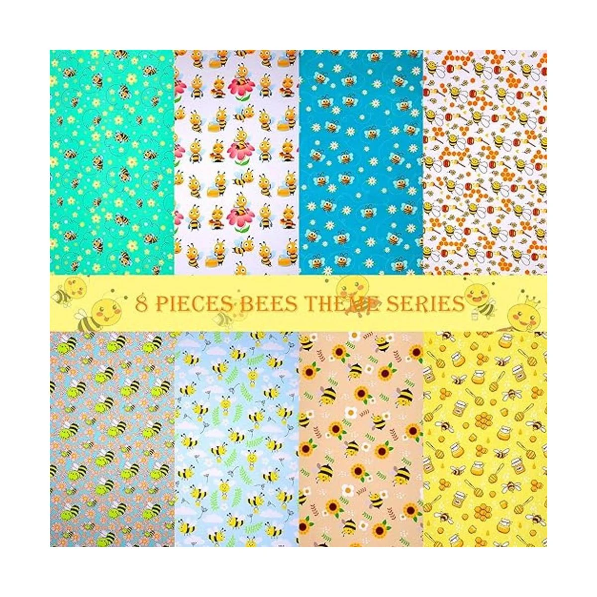 Cantidad adecuada: recibirás un total de 8 paquetes de tela con patrón de abejas en diferentes diseños de elementos clásicos con temática de abejas, cantidad adecuada y estilos variados para apoyar tu uso diario, también te ayuda a hacer manualidades de costura navideñas, te trae mucha diversión hecha a mano