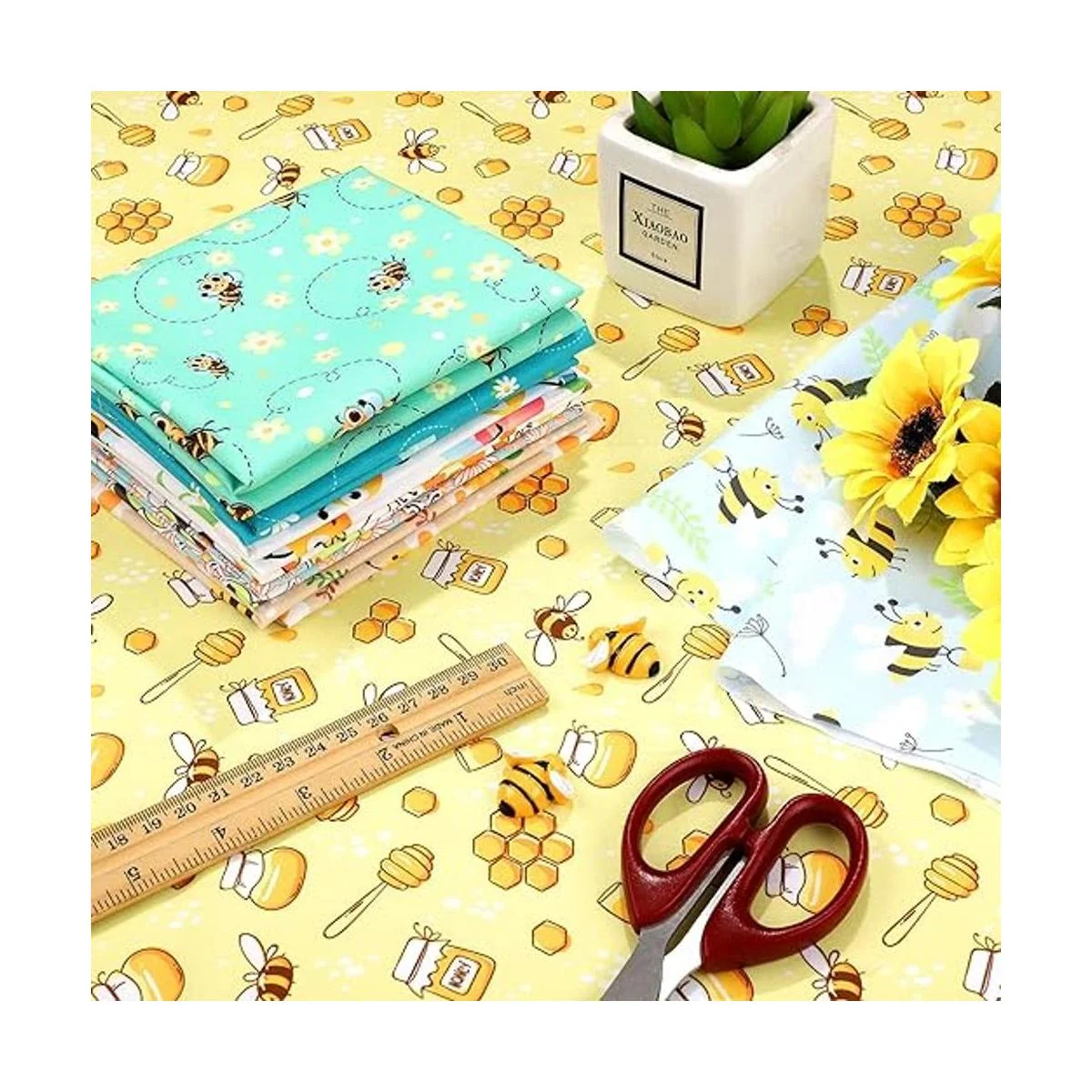 Tema de patrón de abeja: tela colorida impresa en varios patrones temáticos de abejas con bonito patrón de abeja, patrón de tarro de miel, patrón de flores de primavera, patrón de girasol y así sucesivamente, tela adorable para manualidades