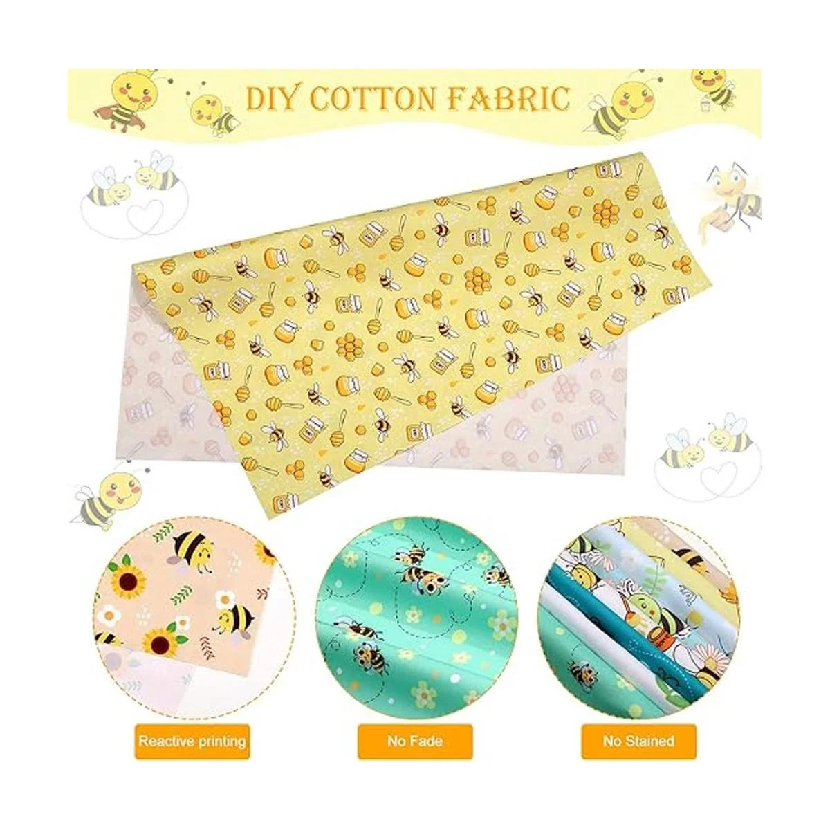 Se permite bricolaje: cada pieza de tela de acolchado de abejas de miel está precortada en forma cuadrada con un tamaño adecuado, también puedes recortarlas en diferentes tamaños y formas en función de tus necesidades reales de manualidades, como bolsas, bolsos pequeños, bolsas de almacenamiento, almohadas, manualidades de costura, decoraciones de pared, envoltorios de regalo y otros proyectos de manualidades de costura, simplemente hazlo tú mismo como quieras