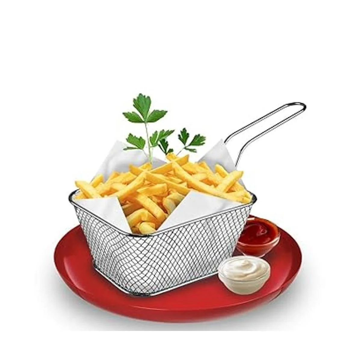 Se puede utilizar para freír pepitas de pollo, patatas fritas, palomitas de maíz, rollos de primavera. Una forma divertida de servir aperitivos y aperitivos