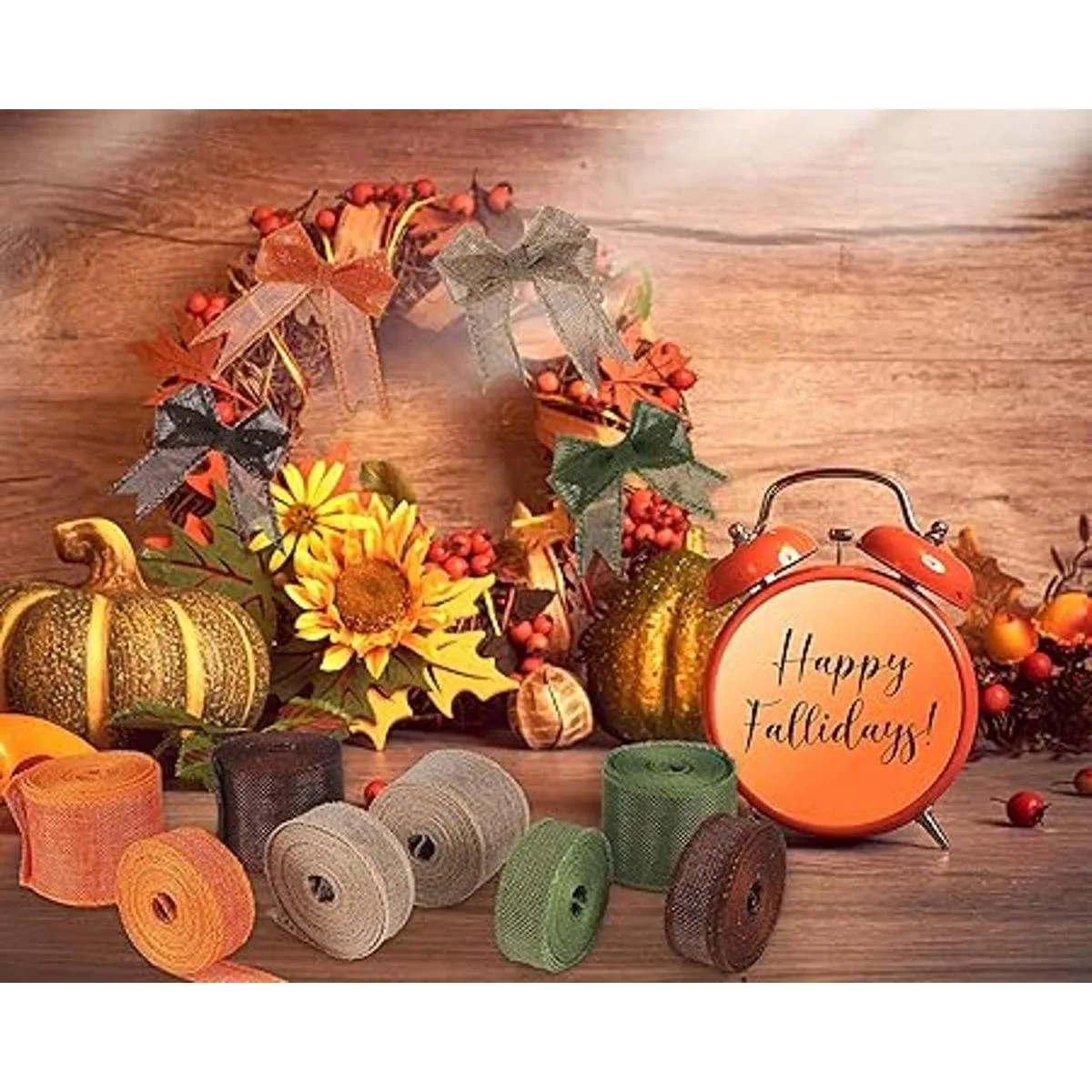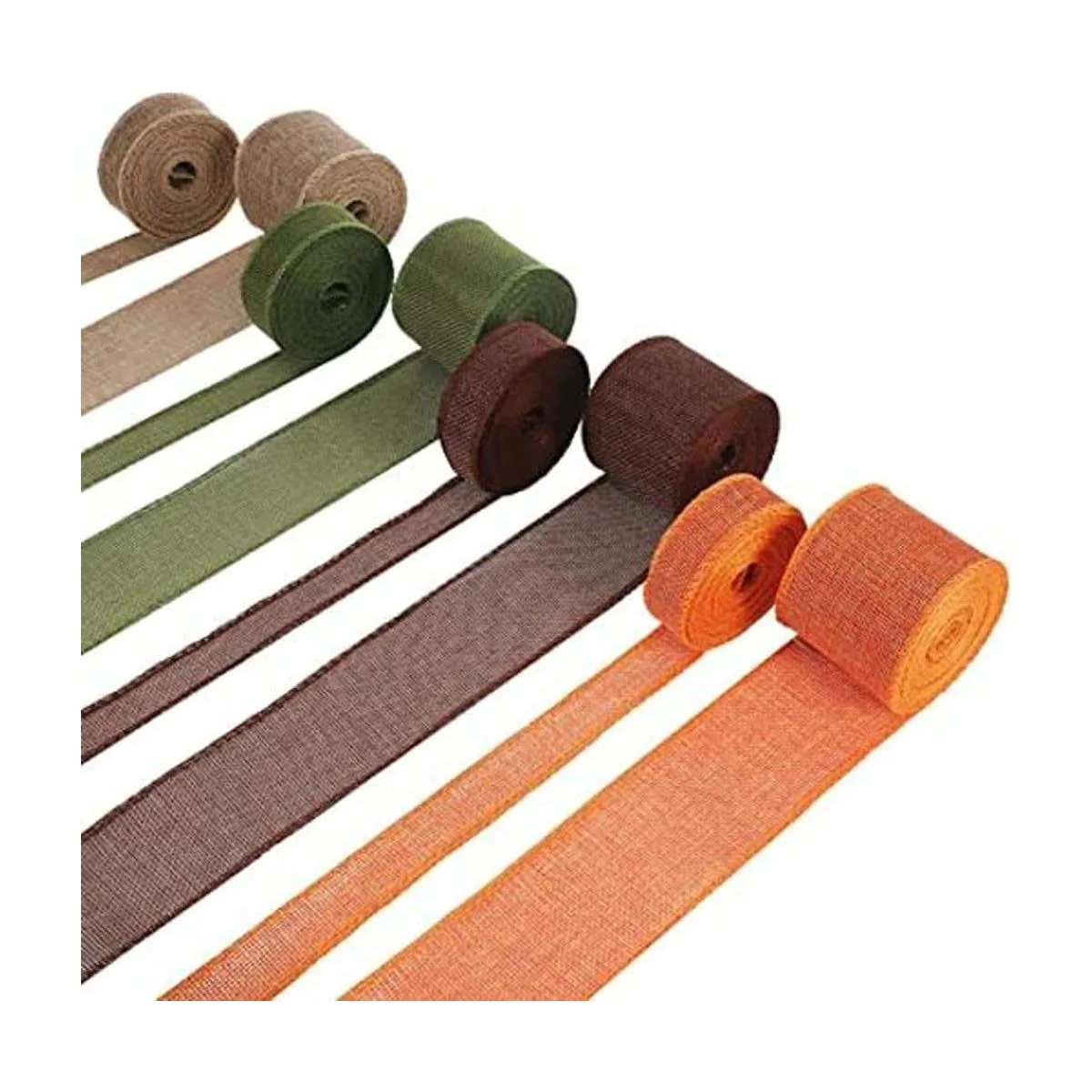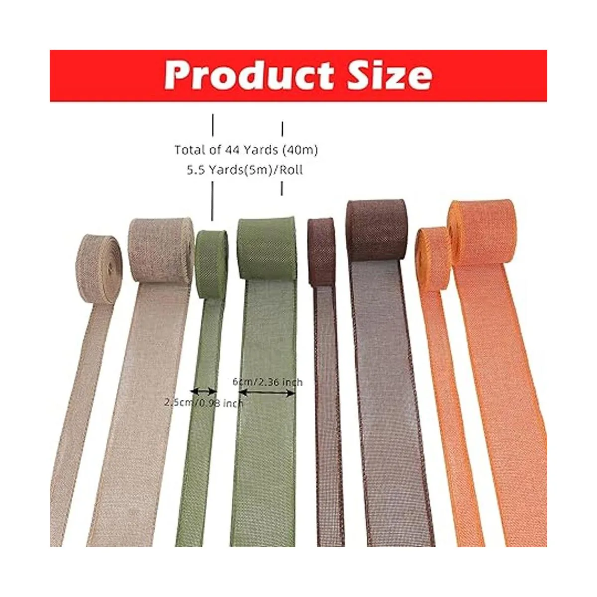 8 rollos de cinta de arpillera con alambre de Navidad de 44 yardas de cinta de tela de Navidad con alambre de cinta de arpillera natural en 4 colores para decoración de día festivo, 2 pulgadas, 1 pulgada colores mezclados