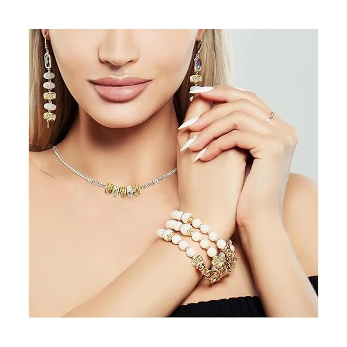 Material resistente: estas cuentas de oro plateado están hechas de latón de calidad con incrustaciones de diamantes de imitación, que cuenta con una estructura resistente y fuerte, no se oxida, rompe, deforma o decolora, los diamantes de imitación se han fijado firmemente a la superficie, lo que no se caerá fácilmente para tu comodidad