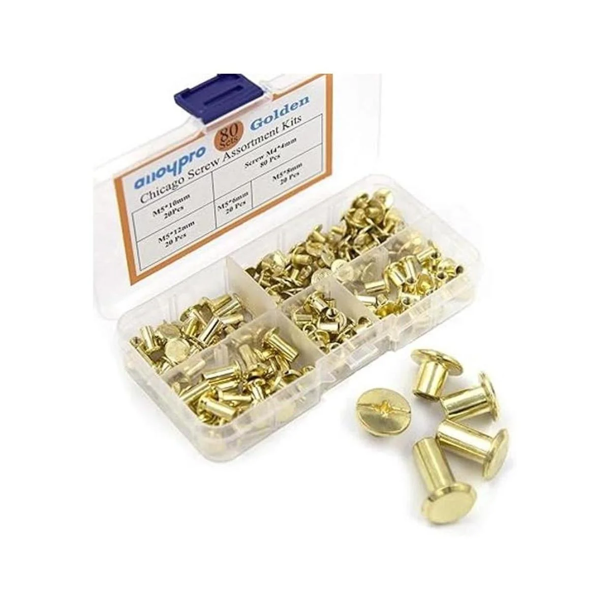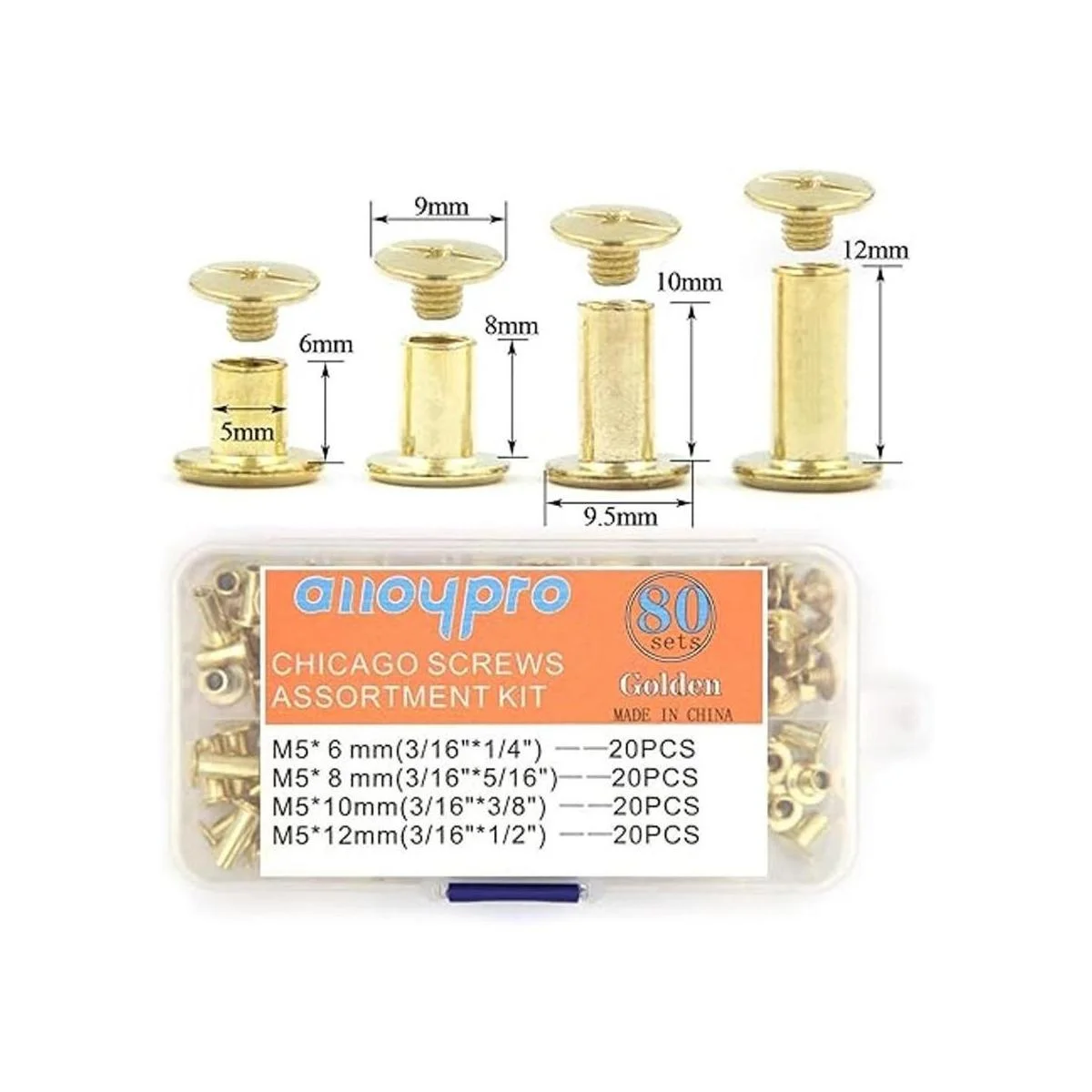 80 juegos de 4 tamaños: el kit de remaches Chicago incluye 4 tamaños M5 x 0.236 in, M5 x 0.315 in, M5 x 0.394 in, M5 x 0.472 in, 20 juegos para cada tamaño, el diámetro de estos remaches de tornillo es de 0.197 in. 5 tipos de longitud de poste son de 0.236 in, 0.315 in, 0.394 in, 0.472 in. Varias longitudes están disponibles para satisfacer tus diferentes necesidades.