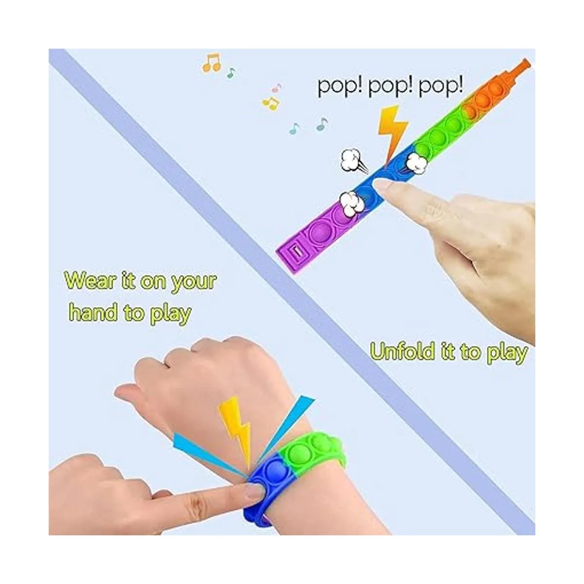 Material de alta calidad: nuestra pulsera de burbujas para apretar está hecha de material de silicona de alta calidad, con una superficie lisa, pulsera suave y elástica, agradable a la piel, puedes llevar los juguetes para ansiedad en cualquier momento que desees