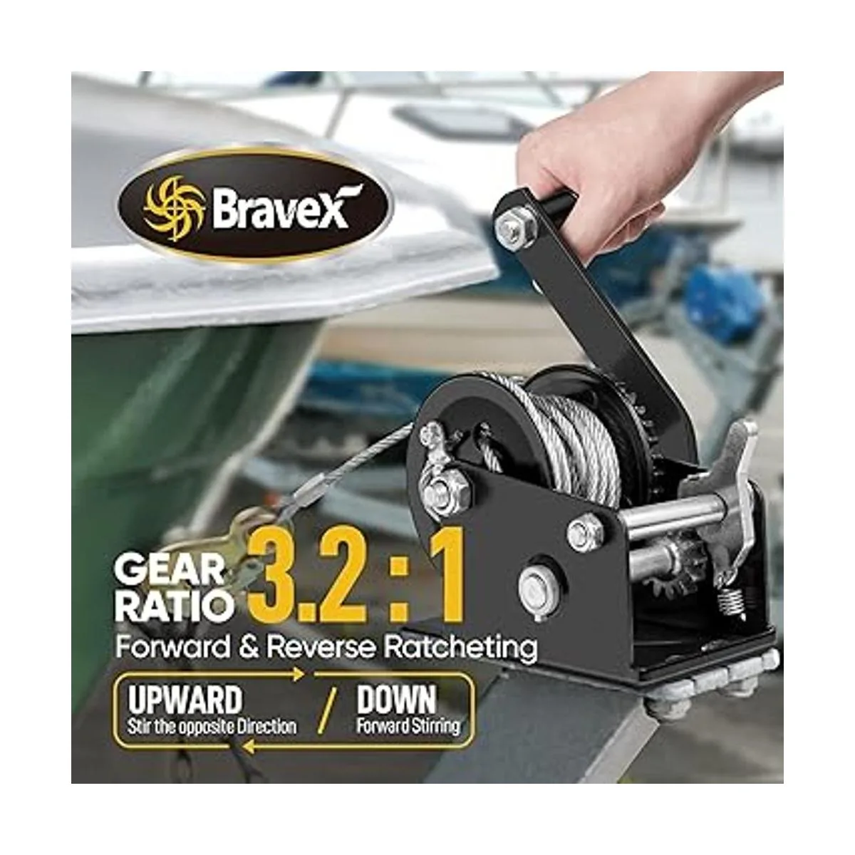 Comfort Grip Handle Using upgraded grip handle to makes cranking easier, and antislip grip handle reduces hand fatigue. Its more productivity while cranking the manual winch.