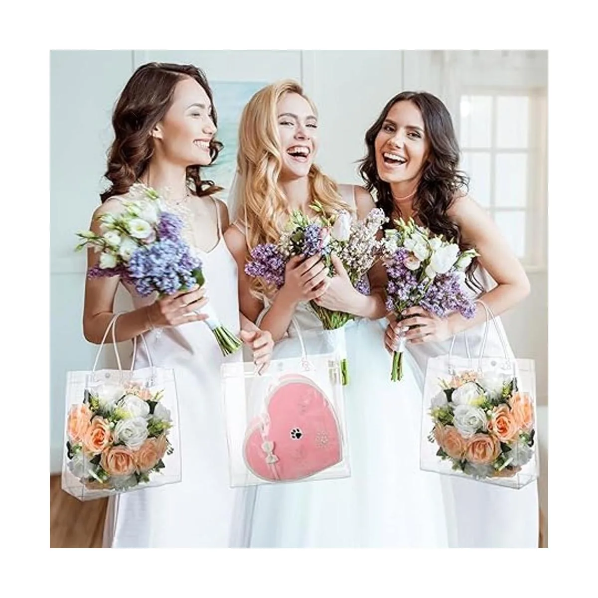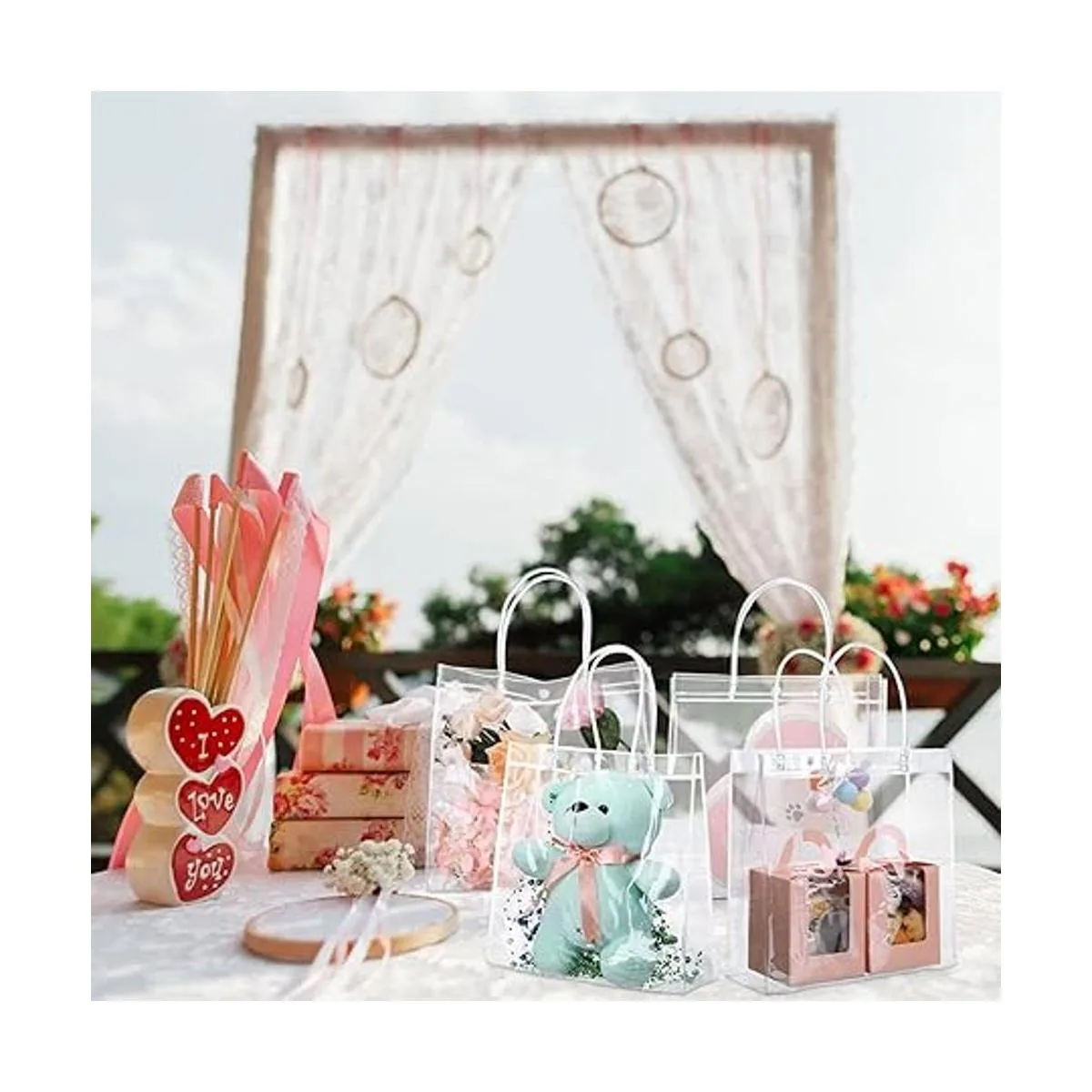 Diseño transparente y bricolaje: el diseño totalmente transparente de las bolsas de regalo de plástico de PVC transparente te permite mostrar tus delicados artículos personales o regalos, y puedes añadir algunas etiquetas o lindas calcomanías en ellas para hacer bolsas personalizadas, o atar cintas a las asas, haciendo que tus bolsas de regalo sean distintivas y significativas, serán un gran éxito