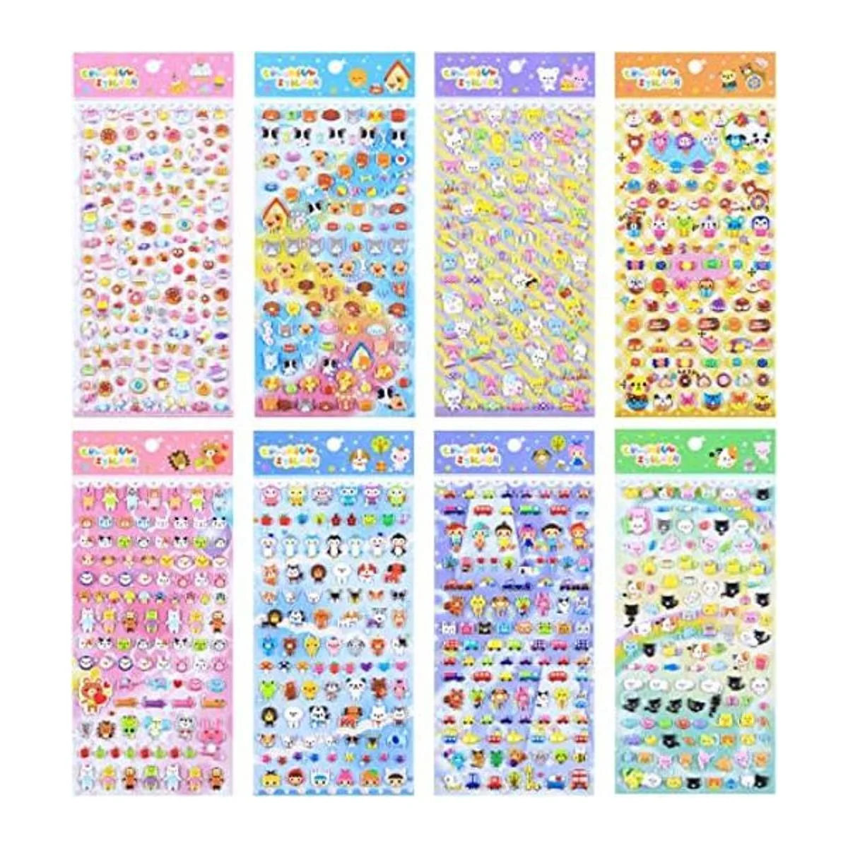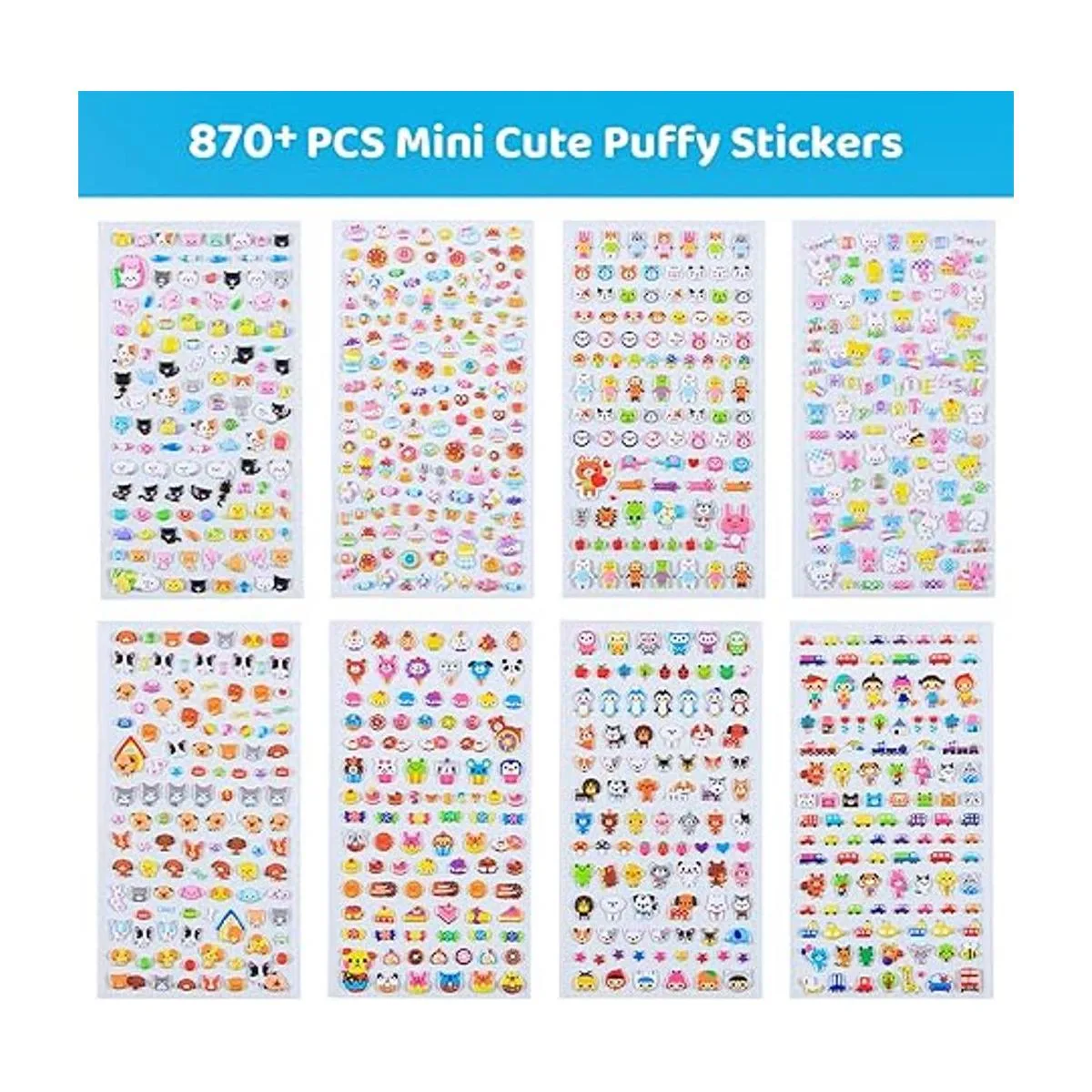 870 calcomanías lindas para niños y niñas, pequeñas calcomanías 3D que incluyen mini animales de dibujos animados, gato, conejo, cachorro, gatito, conejo, comida, donas, corazones, estrellas y más para agenda de álbumes de recortes, decoración de funda de teléfono, recompensas y manualidades de bricolaje, 8 hojas.