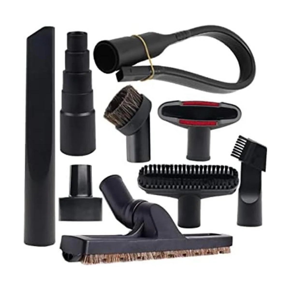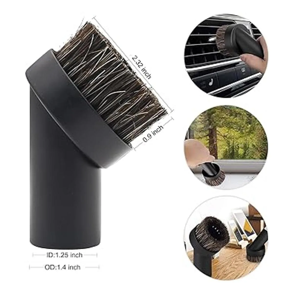 Accesorios de aspiradora incluidos: adaptador de manguera de vacío de 2 1/2 a 1 1/4 pulgadas, adaptador de vacío de 1 7/8 a 1 3/8 a 1 1/4 a 1 1/4 a 1 pulgada, accesorio de cepillo de vacío de 12 pulgadas de ancho, cepillo de vacío de 1 1/4 pulgadas, herramienta de grietas de vacío de 1 1/4 pulgadas. 1 1/4 Accesorio de herramienta de tapicería, boquilla de utilidad de 1 1/4 pulgadas con cepillo de plástico extraíble, herramienta de combinación de cepillo y boquilla de 1 1/4 pulgadas.