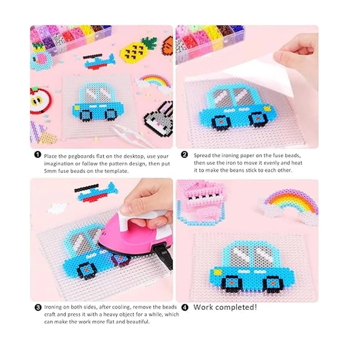 Fácil de usar: utiliza tu imaginación para hacer tus manualidades de cuentas. Simplemente coloca las cuentas fusibles de 0.197 in en el tablero de cuentas, luego cúbrelas con papel de planchado y finalmente fusiona las cuentas junto con una plancha.