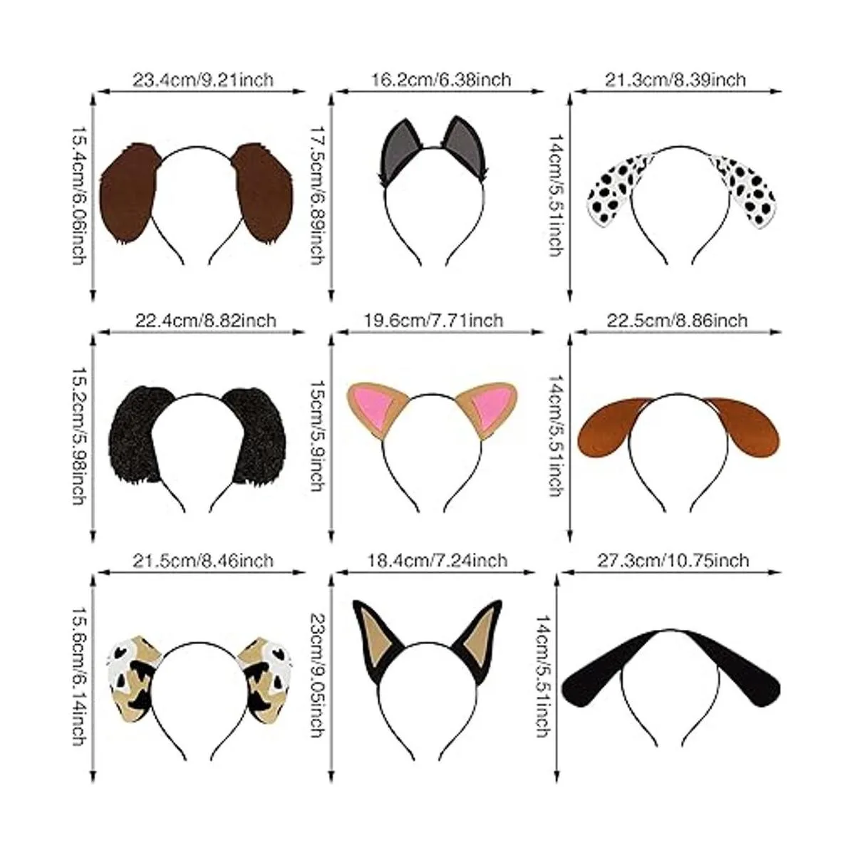 9 diademas de orejas para perros para mascotas, regalos de fiesta de cumpleaños para disfraces, suministros de fiesta de disfraces