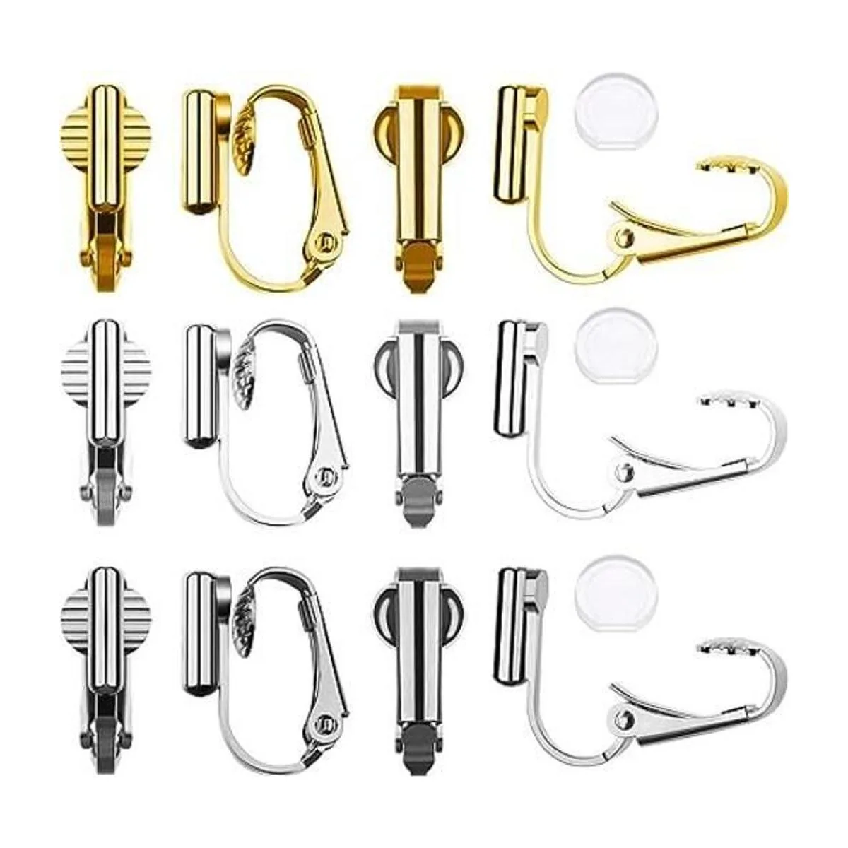 Diseños fabricados: cada convertidor de aretes de clip tiene un tapón de oreja, es fácil y conveniente aplicar el gancho de aretes o el clavo de la oreja; puedes colgar cuentas, colgantes o cualquier otro accesorio de joyería de acuerdo a tu favor
