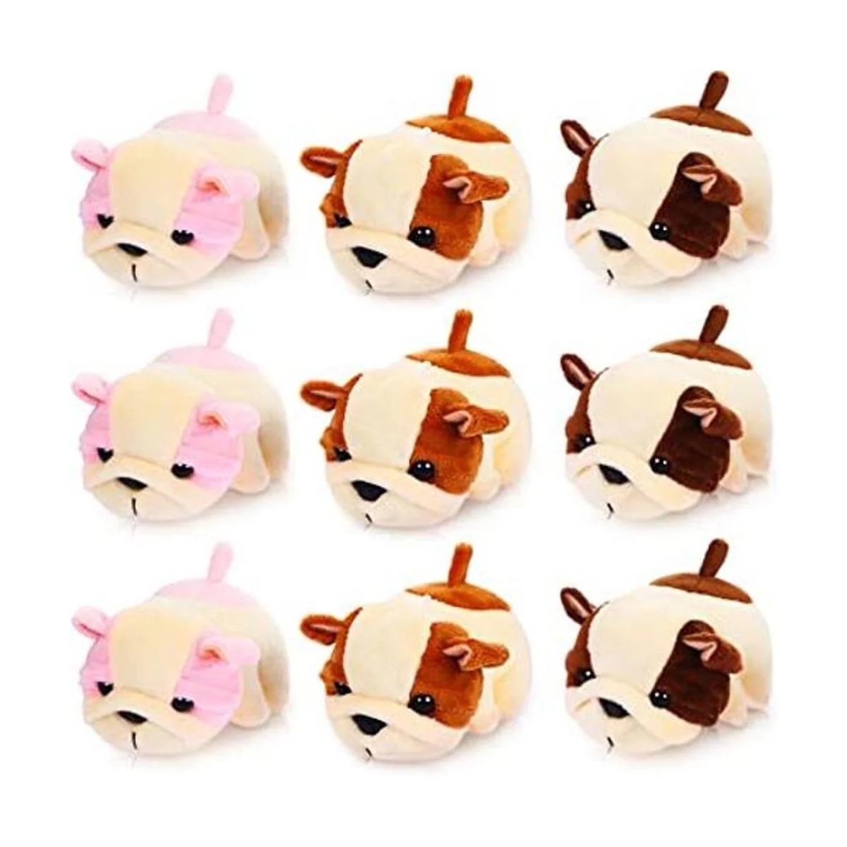Contenido del paquete: recibirás 9 mini cachorros de peluche en 3 colores clásicos, incluyendo rosa, marrón claro, marrón oscuro, cada color para 3 piezas, y tienen un pequeño lazo en la parte posterior de cada uno, puedes fijar un llavero, por lo que se pueden fijar a mochila, llaves o teléfono, encantador y delicado