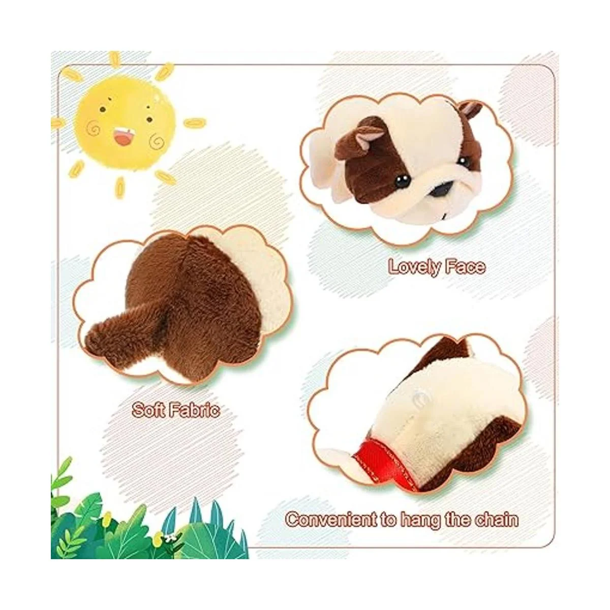 Compañero cuidadoso: el pequeño perro de peluche es fácil de fijar y se puede colgar en trabillas para cinturón, mochilas, bolsos, puertas, y también se puede deslizar directamente en bolsillos o bolsas de correo; sin duda, es un compañero considerado