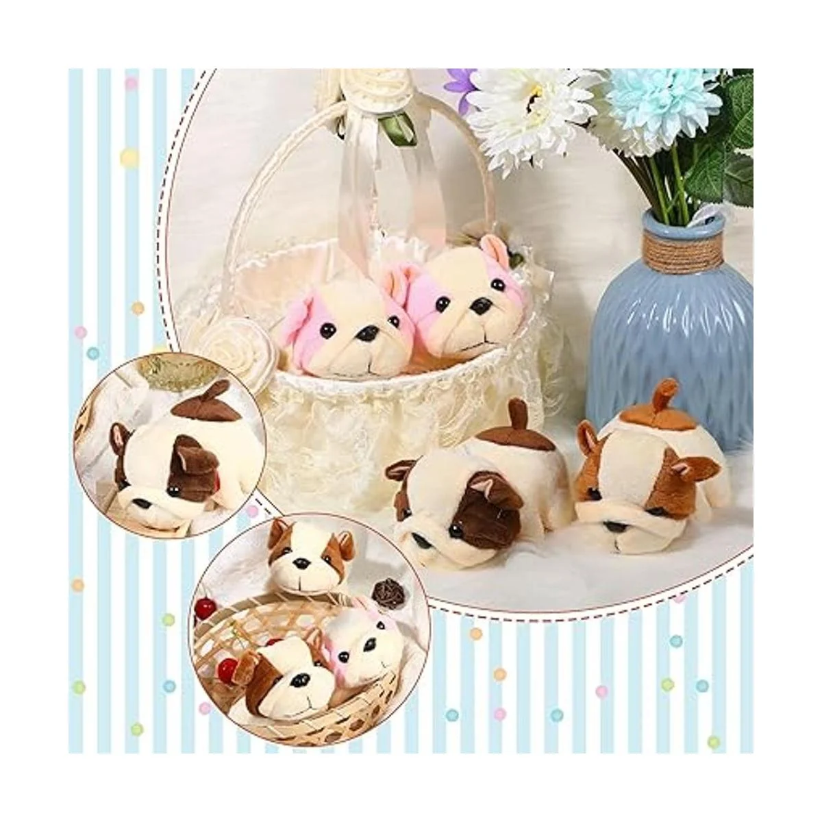 Amplia aplicación: el recuerdo de fiesta de cachorro de felpa es adecuado y bonita decoración para dormitorio, sala de estar, hogar, decoración de oficina, etc. Su bonita cara y cuerpo suave pueden reducir la fatiga de tu trabajo y ofrecerte un momento relajante y feliz, también es un dulce regalo para niños y niñas en el cumpleaños, Halloween, Navidad, Acción de Gracias, Día de San Valentín, etc. Mejora fácilmente la relación