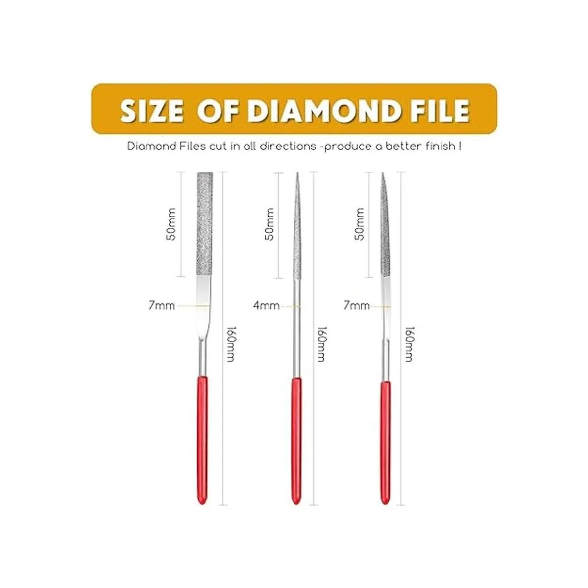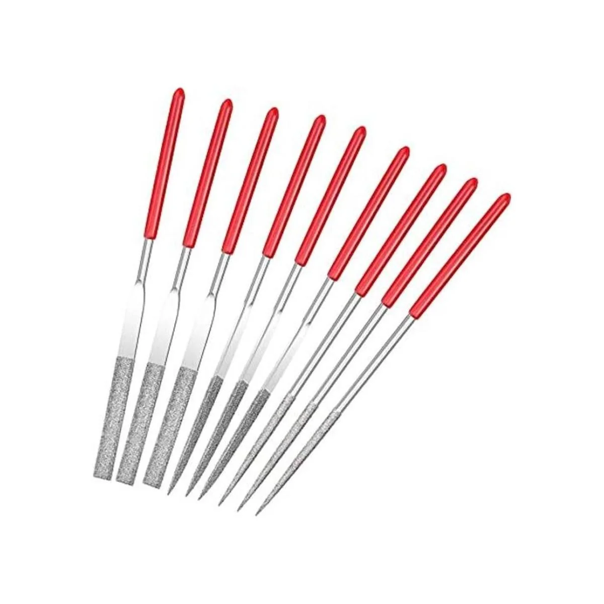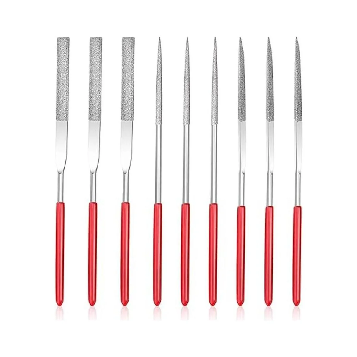 9 piezas de archivos en miniatura y modelo, incluye juego de lima de diamante redonda, plana y triangular de metal