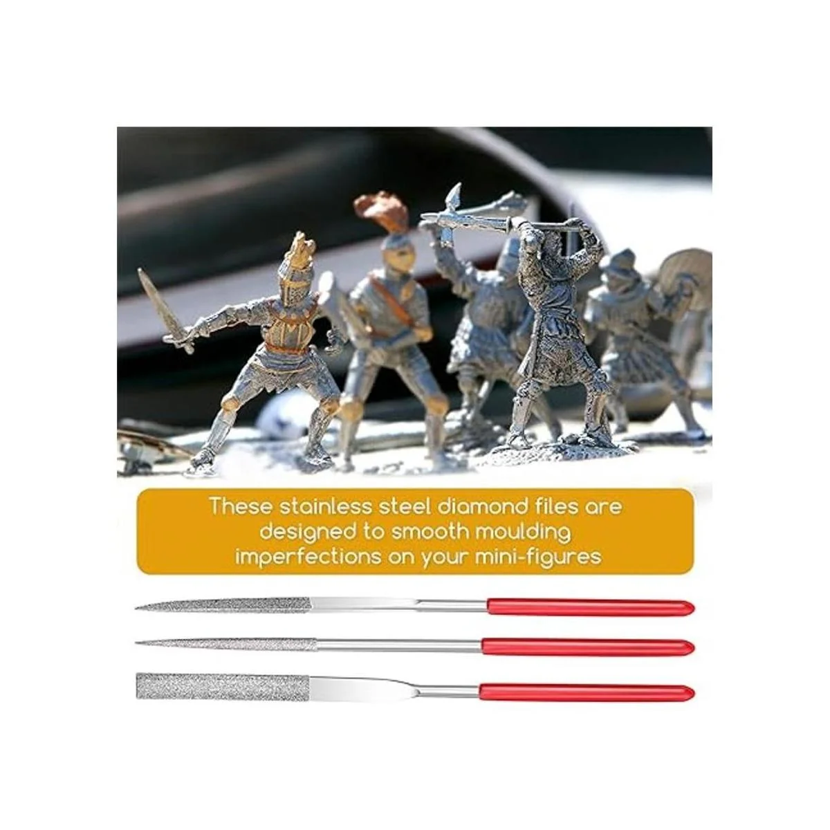 Ventajas del producto: estas herramientas de limas en miniatura pueden eliminar eficazmente las líneas de moho en el metal, pero pueden tallar un trozo en miniatura de plástico, estas limas de diamante de acero inoxidable están diseñadas para suavizar las imperfecciones de moldeado en tus minifiguras, limar puntos ásperos sin perder detalles