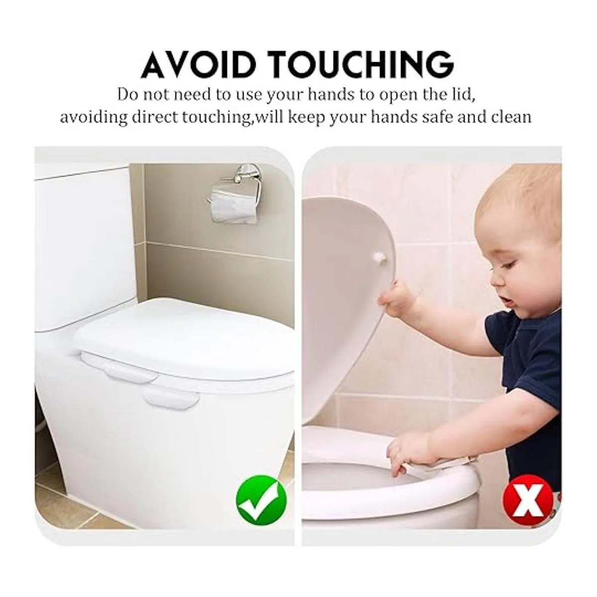 Evita tocar directamente: no hay necesidad de tocar el inodoro directamente con las manos, simplemente levanta el mango para abrir la tapa del inodoro, puedes utilizar el elevador de asiento de inodoro en el baño, hogar, viajes, oficina, hotel, inodoros públicos, lo que mantendrá tus manos seguras y limpias